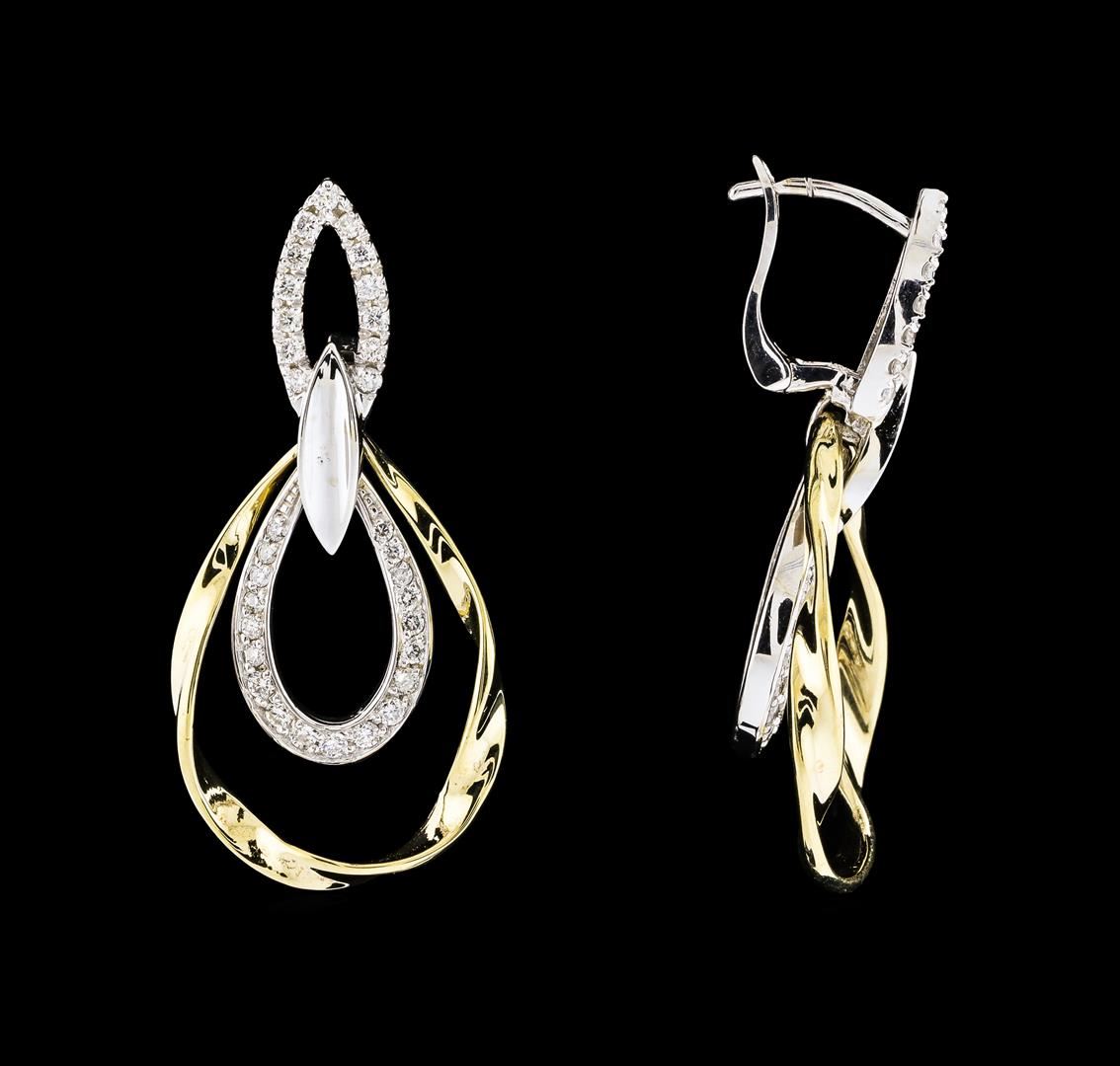 One pair of Diamond Earrings featuring: 14KT Two-Tone Gold with a total weight of 7.39 grams and 64 Diamonds with a total weight of 0.67ctw.