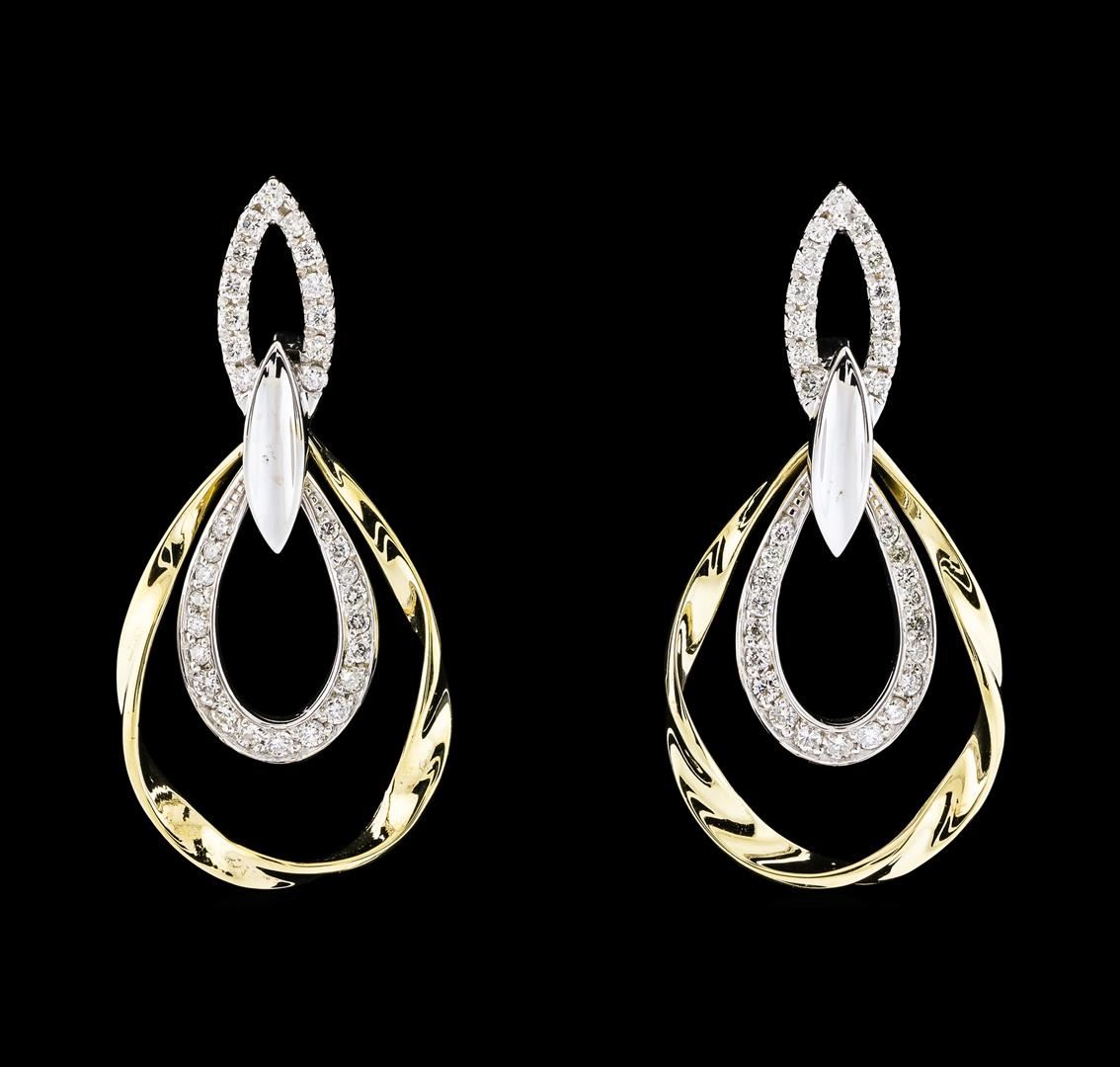 One pair of Diamond Earrings featuring: 14KT Two-Tone Gold with a total weight of 7.39 grams and 64 Diamonds with a total weight of 0.67ctw.