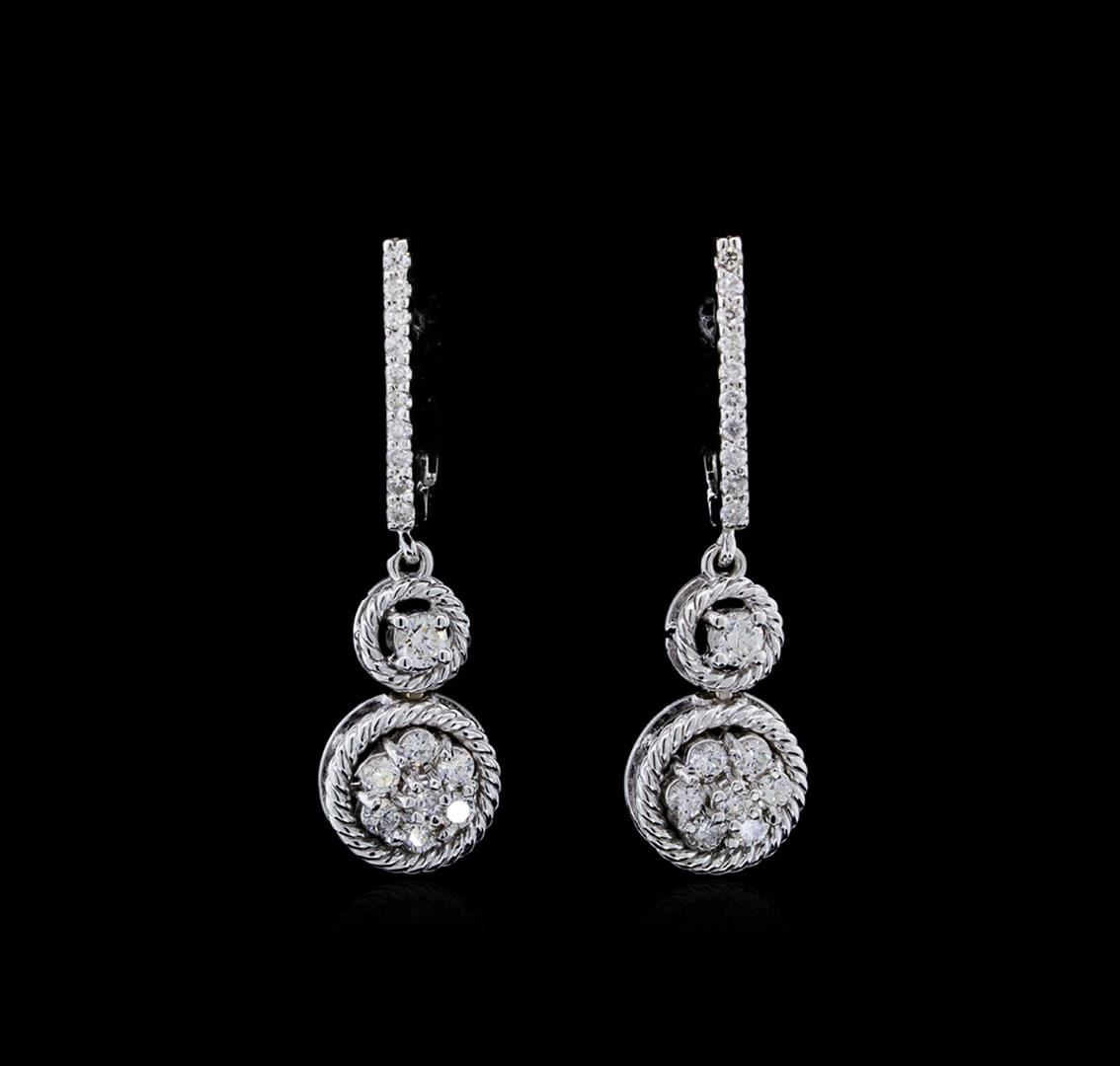 One pair of earrings featuring: 14KT white gold weighing 4.60 grams containing two diamonds with a total weight of 0.15ct and side diamonds with a total weight of 0.52ct.