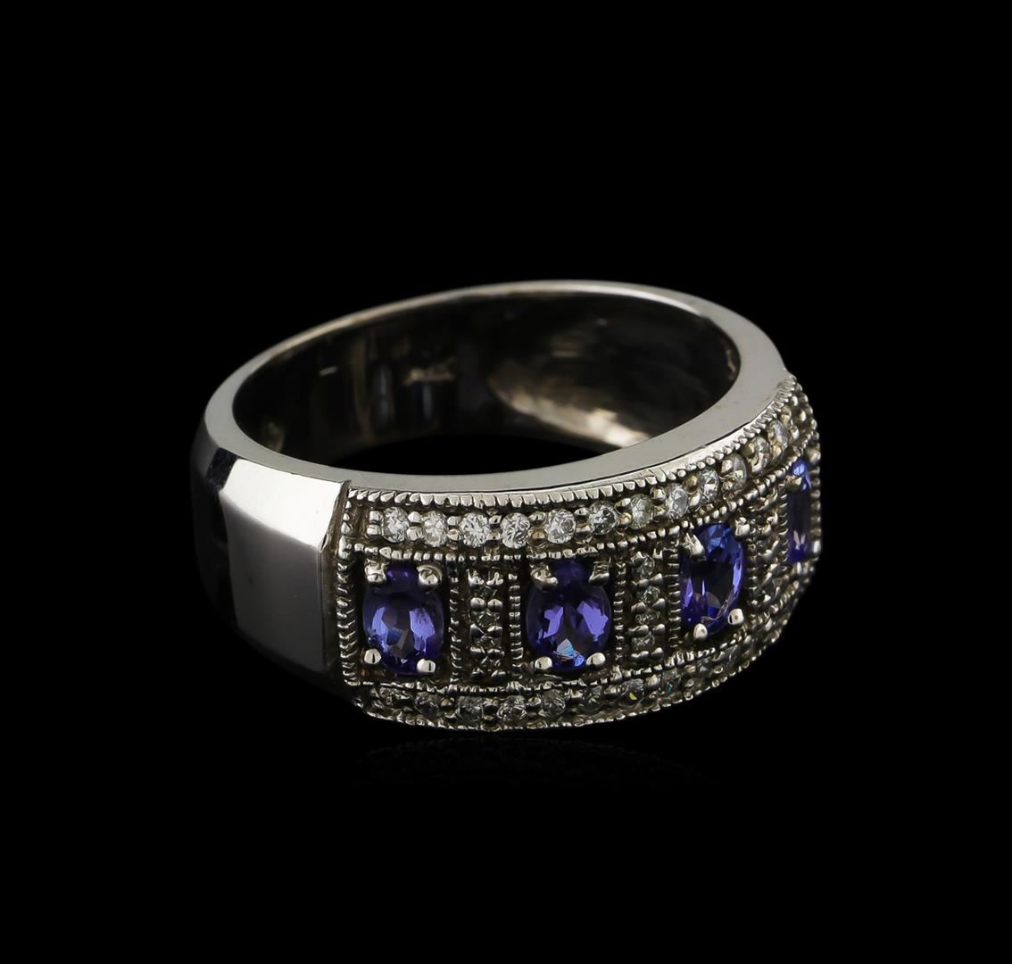 One ring featuring: 14KT white gold weighing 6.50 grams containing four tanzanites with a total weight of 0.68ct and diamonds with a total weight of 0.24ct.