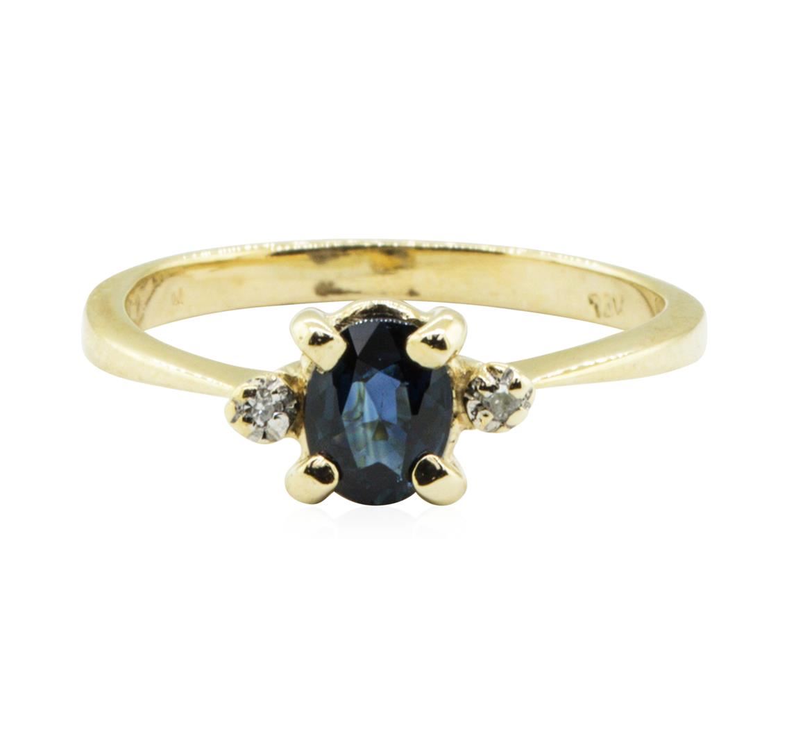One ring featuring: 14KT yellow gold weighing 2.0 grams containing one sapphire weighing 0.65ctw and diamonds weighing 0.04ctw.