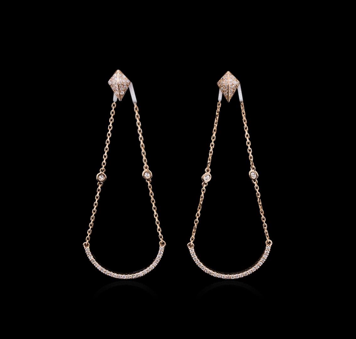 One pair of earrings featuring: 14KT rose gold weighing 5.98 grams containing diamonds with a total weight of 0.69ct.