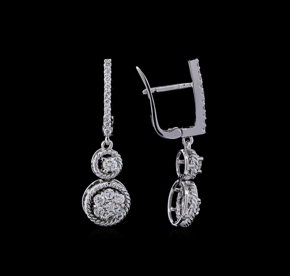 One pair of earrings featuring: 14KT white gold weighing 4.56 grams containing two diamonds with a total weight of 0.15ct and side diamonds with a total weight of 0.55ct.