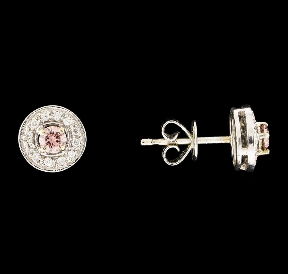 One pair of earrings : 18KT white gold weighing 2.25 containing pink diamonds with a total weight of 0.30ctw and side diamonds weighing 0.40ctw.