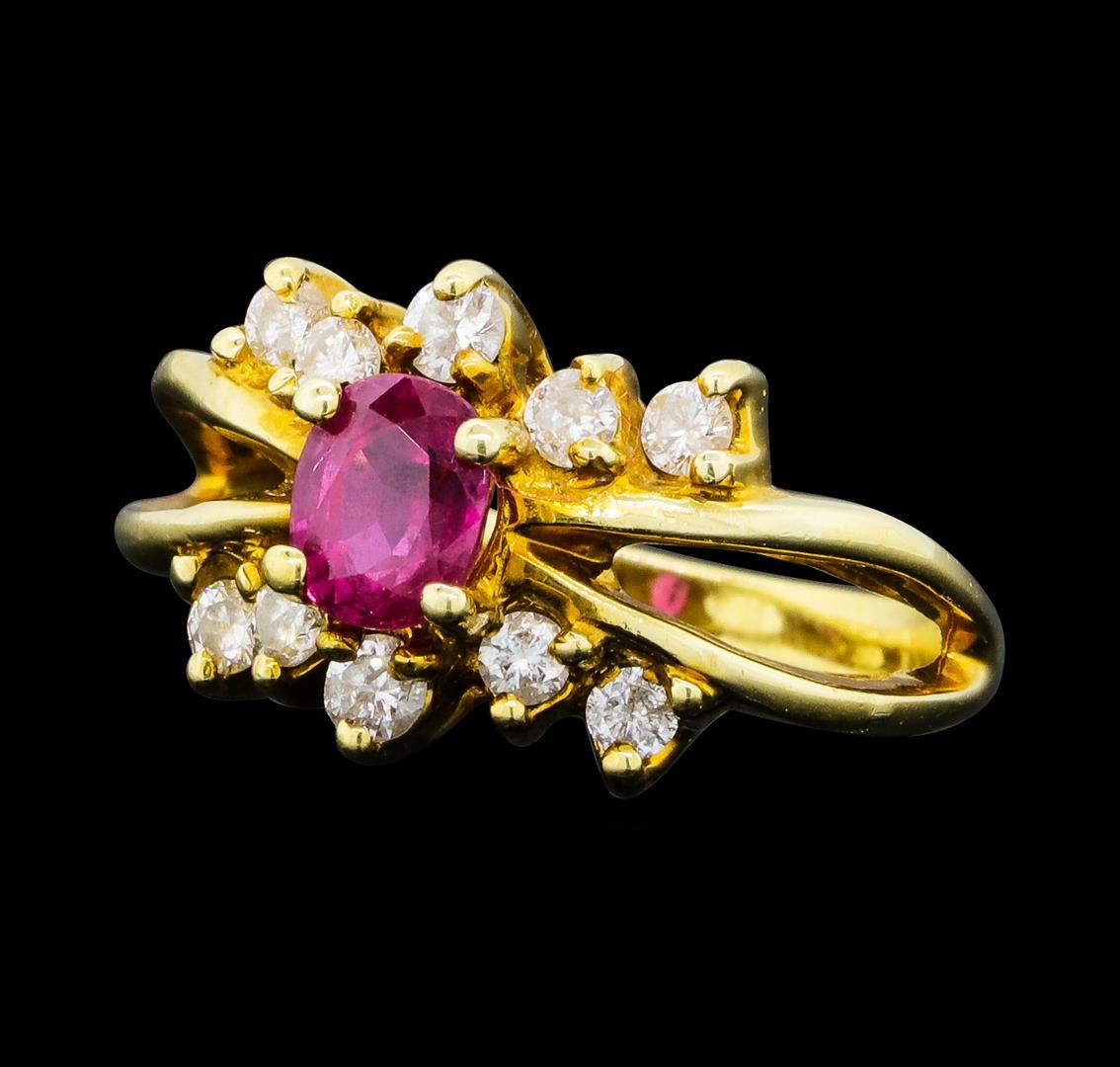0.70 ctw Ruby and Diamond Ring - 14KT Yellow Gold