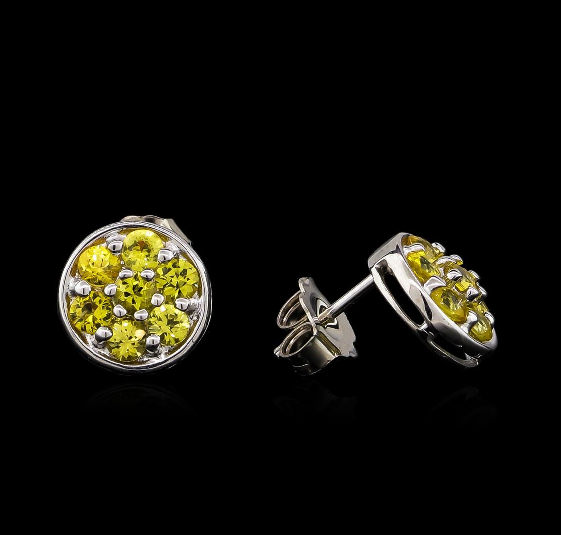 One pair of earrings featuring: 14KT white gold weighing 2.25 grams containing yellow sapphires with a total weight of 0.70ct.