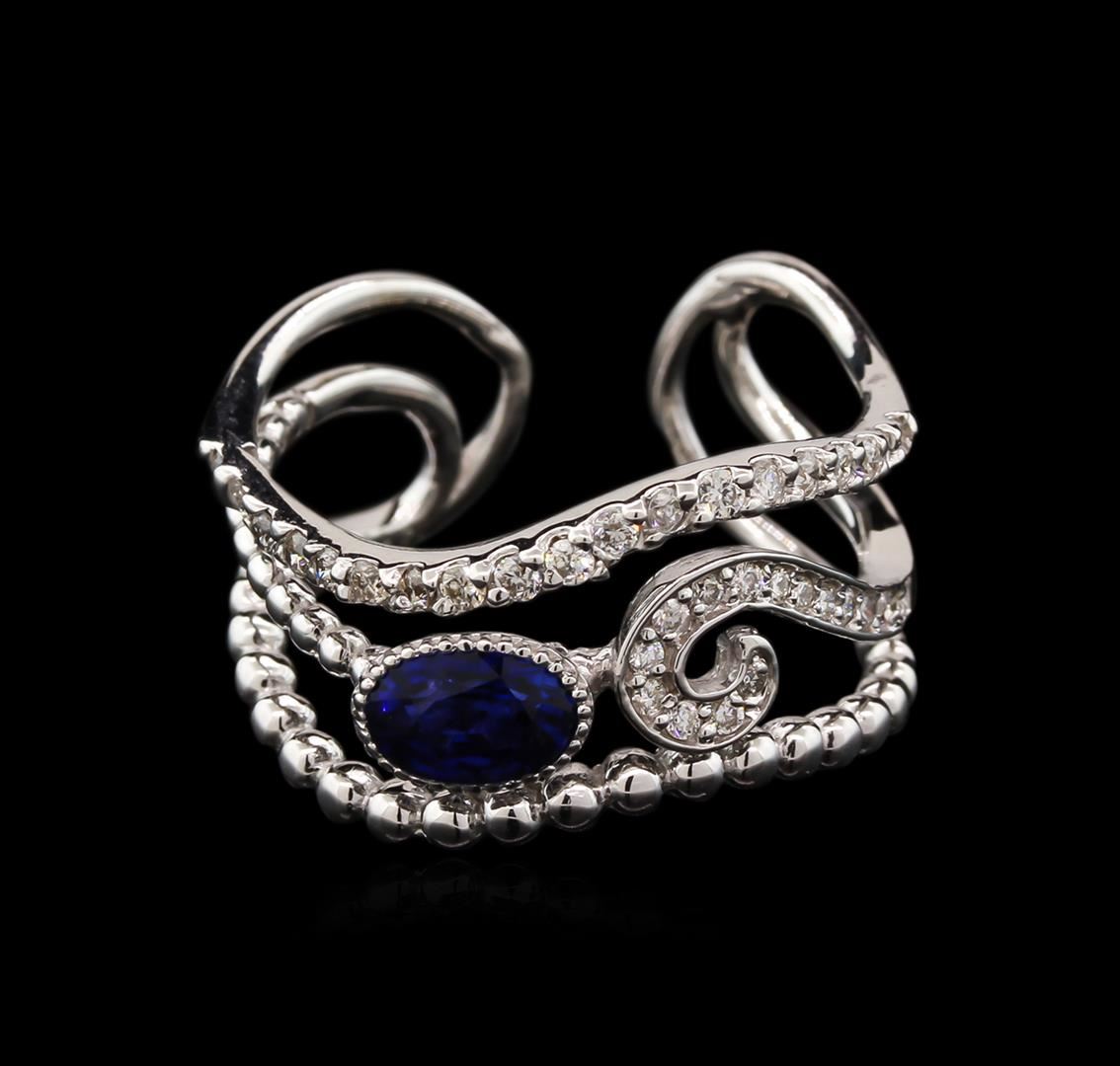 One ring featuring: 14KT white gold weighing 4.07 grams containing one blue sapphire with a total weight of 0.70ct and diamonds with a total weight of 0.30ct.