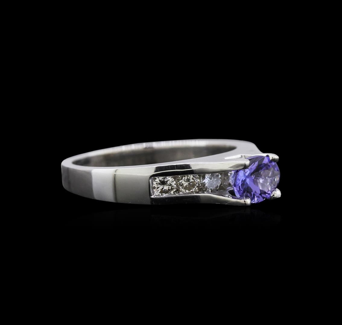 One ring featuring: platinum weighing 7.08 grams containing one tanzanite center stone with a total weight of 0.70ct and diamonds with a total weight of 0.45ct.