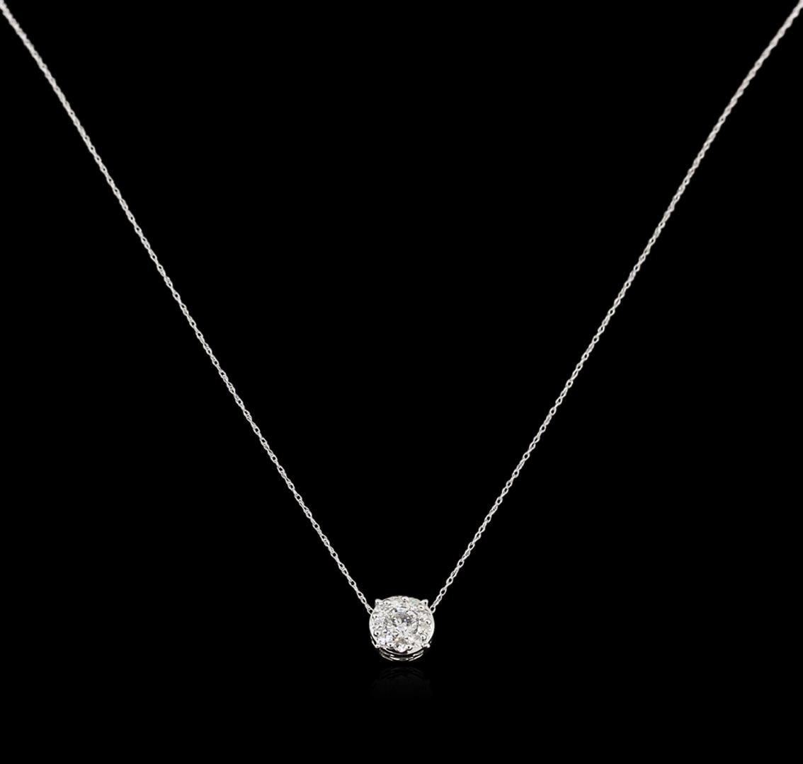 One pendant with chain featuring: 14KT white gold weighing 1.90 grams containing one diamond center stone with a total weight of 0.40ct and diamond side stones with a total weight of 0.30ct.