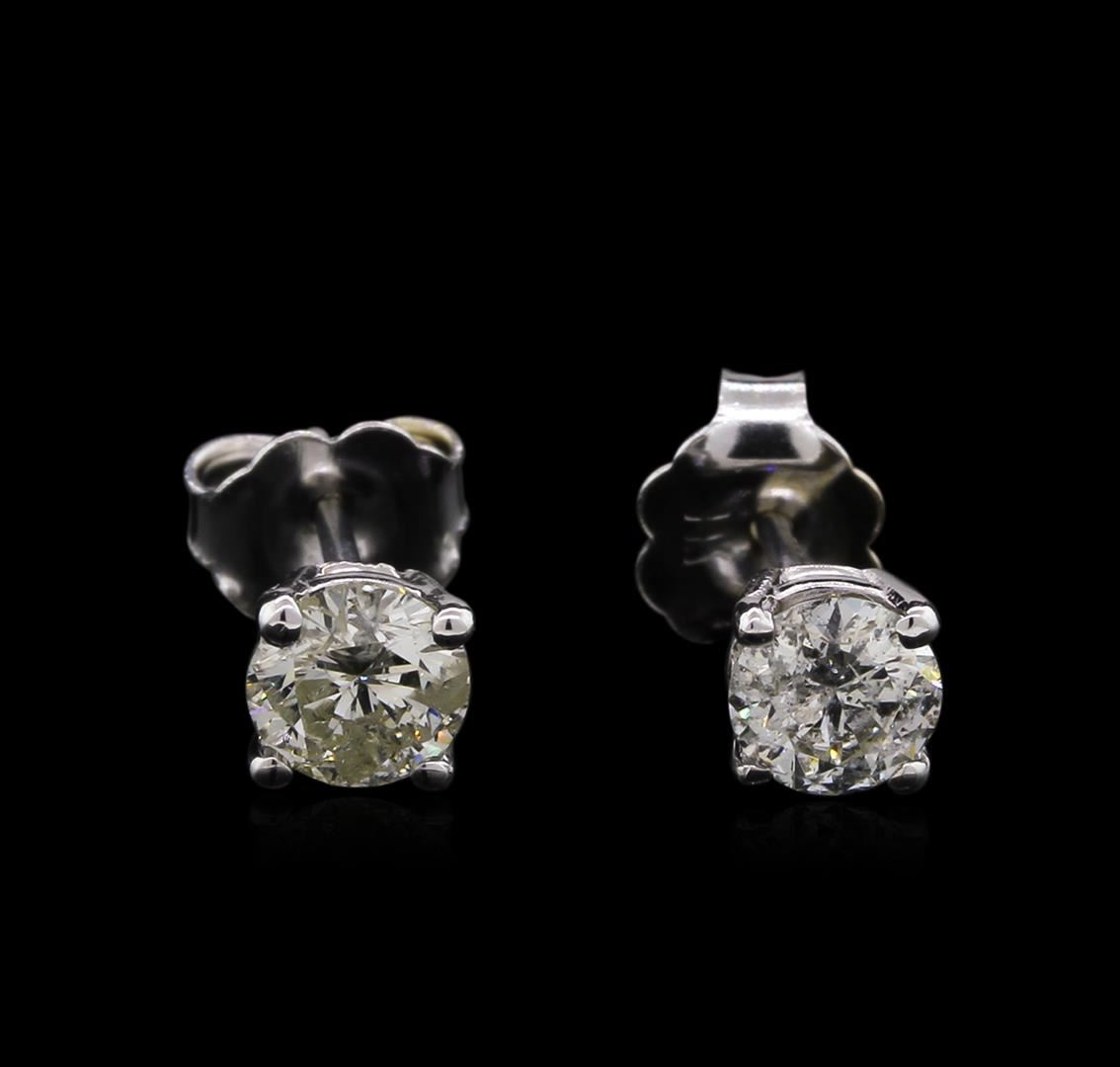 One pair of earrings featuring: 14KT white gold weighing 0.62 grams containing two diamonds with a total weight of 0.71ct.
