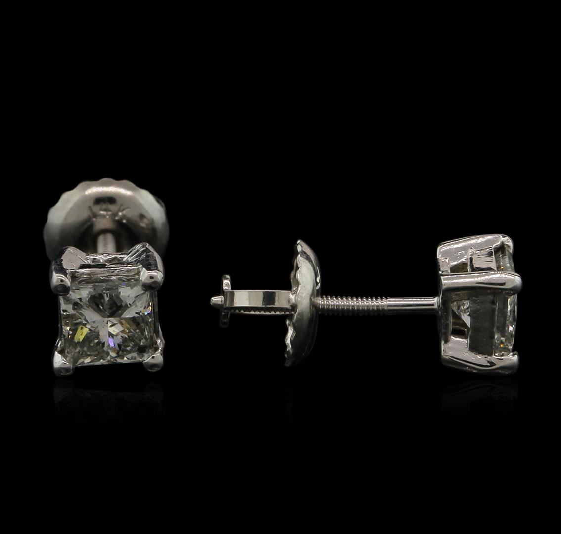 One pair of stud earrings featuring: 14KT white gold weighing 0.75 grams containing prong set princess cut diamonds with a total weight of 0.71ct.