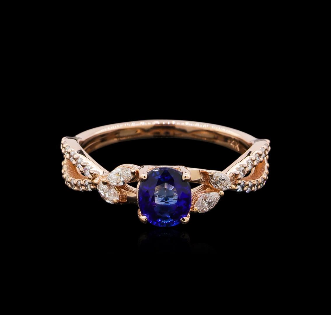 One ring featuring: 14KT rose gold weighing 2.02 grams containing one sapphire center weighing 0.71ct and diamonds weighing 0.15ctw.