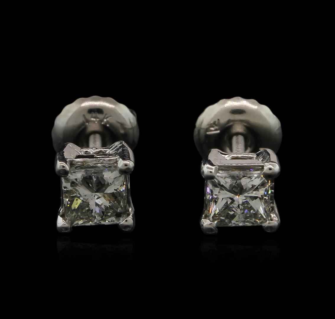 One pair of stud earrings featuring: 14KT white gold weighing 0.75 grams containing prong set princess cut diamonds with a total weight of 0.71ct.