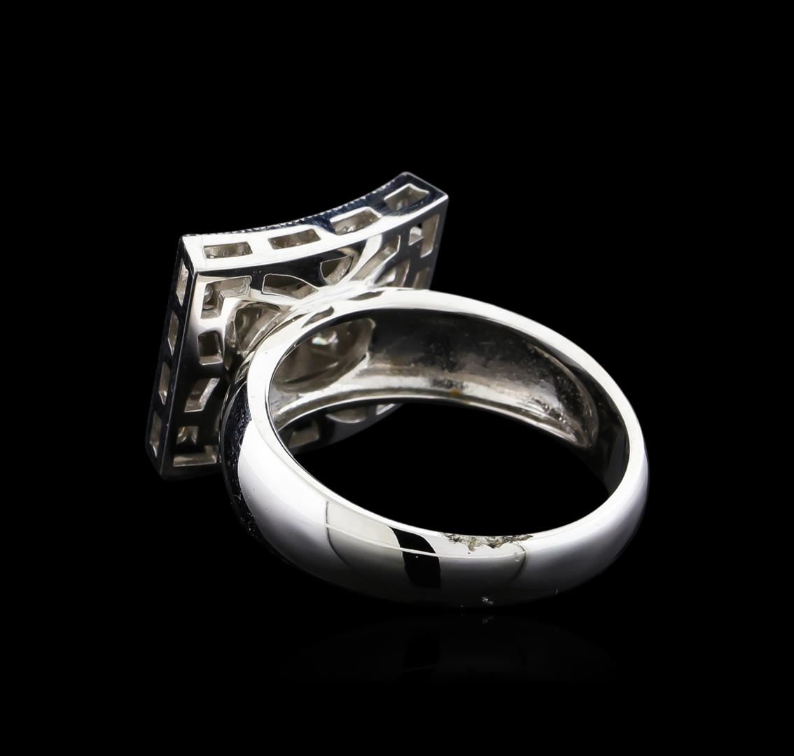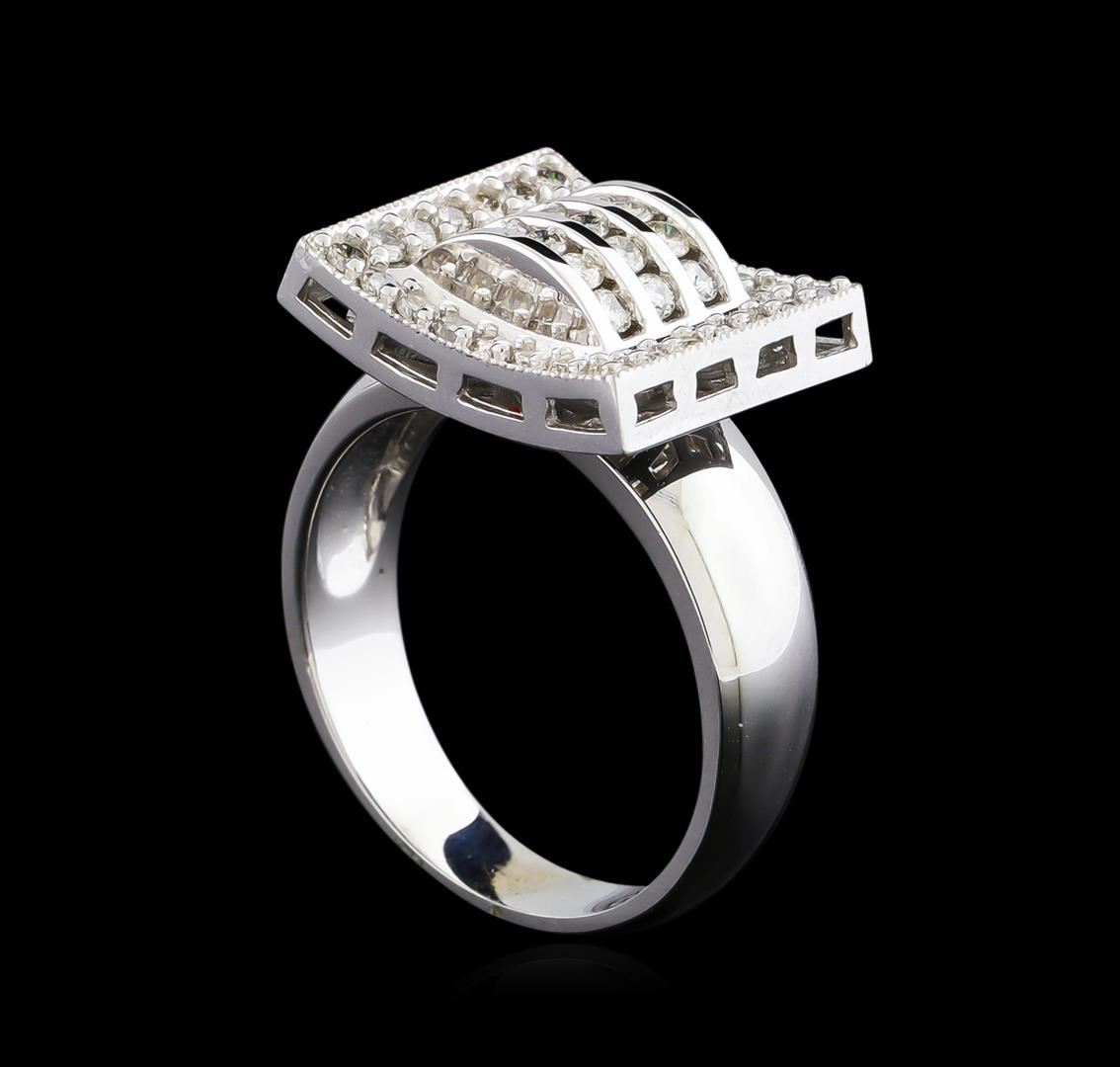 One electronically tested 14KT white gold lady's cast fashion ring with a bright polish with milgrain detailing finish. The featured lady's ring has a shank measuring 3.83 millimeters wide. Identified with markings of "14K". Condition is new, good workmanship. Containing: Twenty-Six prong set round brilliant cut diamonds, measuring 1.70 - 1.60 x 1.02mm (depth est.) approximate total weight of 26 Stones = 0.46ct. Graded in the setting. Clarity: SI-1 to SI-2. Color: G - Good Fifteen channel set round brilliant cut diamonds, measuring 1.70 - 1.60 x 1.02mm (depth est.) approximate total weight of 15 Stones = 0.26ct. Graded in the setting. Clarity: SI-1 to SI-2. Color: G - Good. Total Weight of Diamonds 0.72ct. Total Weight of Ring 7.70gm. GAS Appraised at $3,365.00.