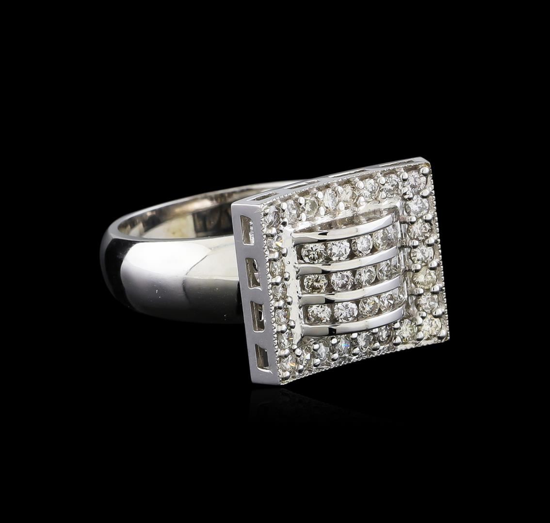 One electronically tested 14KT white gold lady's cast fashion ring with a bright polish with milgrain detailing finish. The featured lady's ring has a shank measuring 3.83 millimeters wide. Identified with markings of "14K". Condition is new, good workmanship. Containing: Twenty-Six prong set round brilliant cut diamonds, measuring 1.70 - 1.60 x 1.02mm (depth est.) approximate total weight of 26 Stones = 0.46ct. Graded in the setting. Clarity: SI-1 to SI-2. Color: G - Good Fifteen channel set round brilliant cut diamonds, measuring 1.70 - 1.60 x 1.02mm (depth est.) approximate total weight of 15 Stones = 0.26ct. Graded in the setting. Clarity: SI-1 to SI-2. Color: G - Good. Total Weight of Diamonds 0.72ct. Total Weight of Ring 7.70gm. GAS Appraised at $3,365.00.