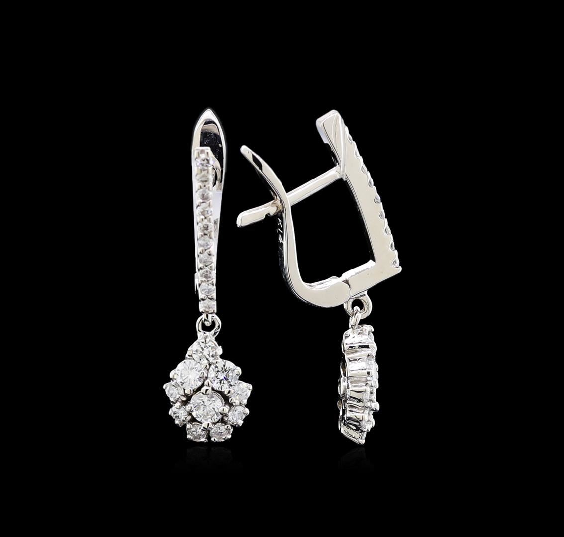One pair of earrings featuring: 14KT white gold weighing 3.35 grams containing diamonds with a total weight of 0.73ct.