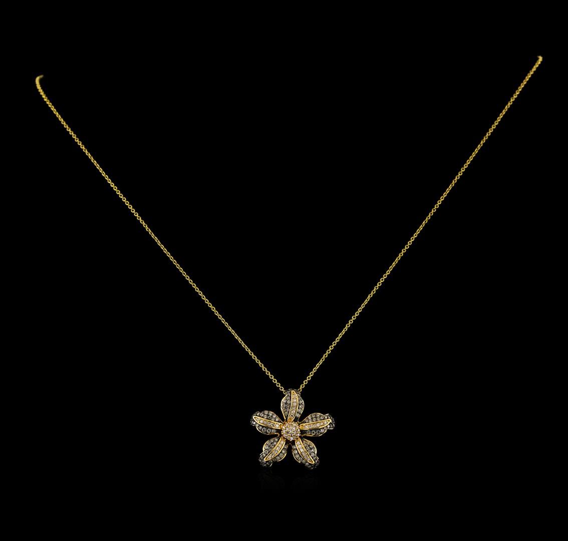 One pendant with chain featuring: 14KT yellow gold weighing 4.30 grams containing white and brown diamonds with a total weight of 0.73ct.