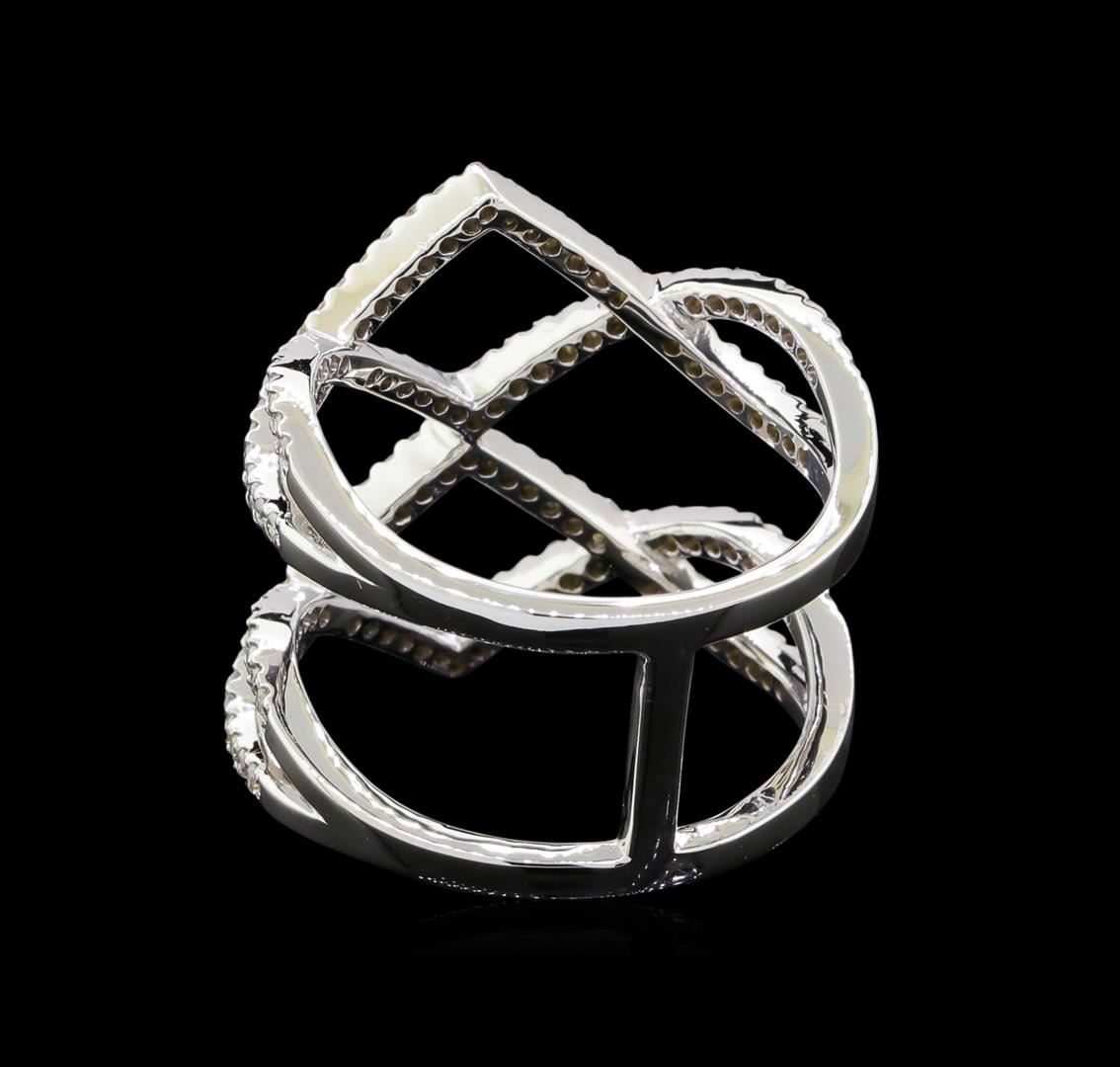 One electronically tested 18KT white gold lady's cast fashion ring with a double shank with a bright polish finish. The featured lady's ring has a double shank measuring 11.67 millimeters wide. Identified with markings of '750'. Condition is new, good workmanship. Containing: One Hundred Twenty-Four prong set round brilliant cut diamonds, measuring 1.20 - 1.15 x 0.71mm (depth est.) approximate total weight of 124 Stones = 0.73ct. Graded in the setting. Clarity SI-1 to SI-2. Color: H - I Cut Good. Total Weight of Diamonds 0.73ct.. Total Weight of Ring 6.40gm. GAS Appraised at $4,155.00.