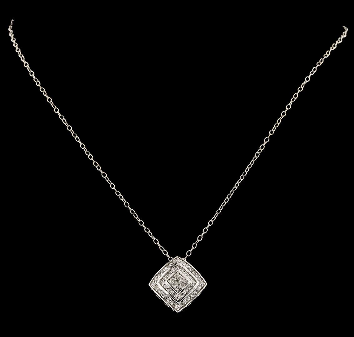 One Diamond Pendant With Chain featuring: 14KT White Gold with a total weight of 5.34 grams and 53 diamonds with a total weight of 0.75ctw.