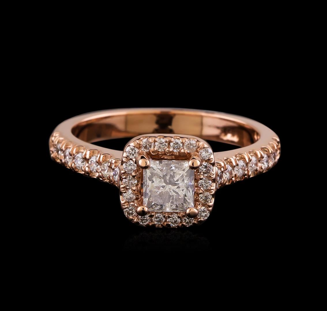 One ring featuring: 14KT rose gold weighing 4.84 grams containing one center diamond with a total weight of 0.75ct and side diamonds with a total weight of 0.38ctw.