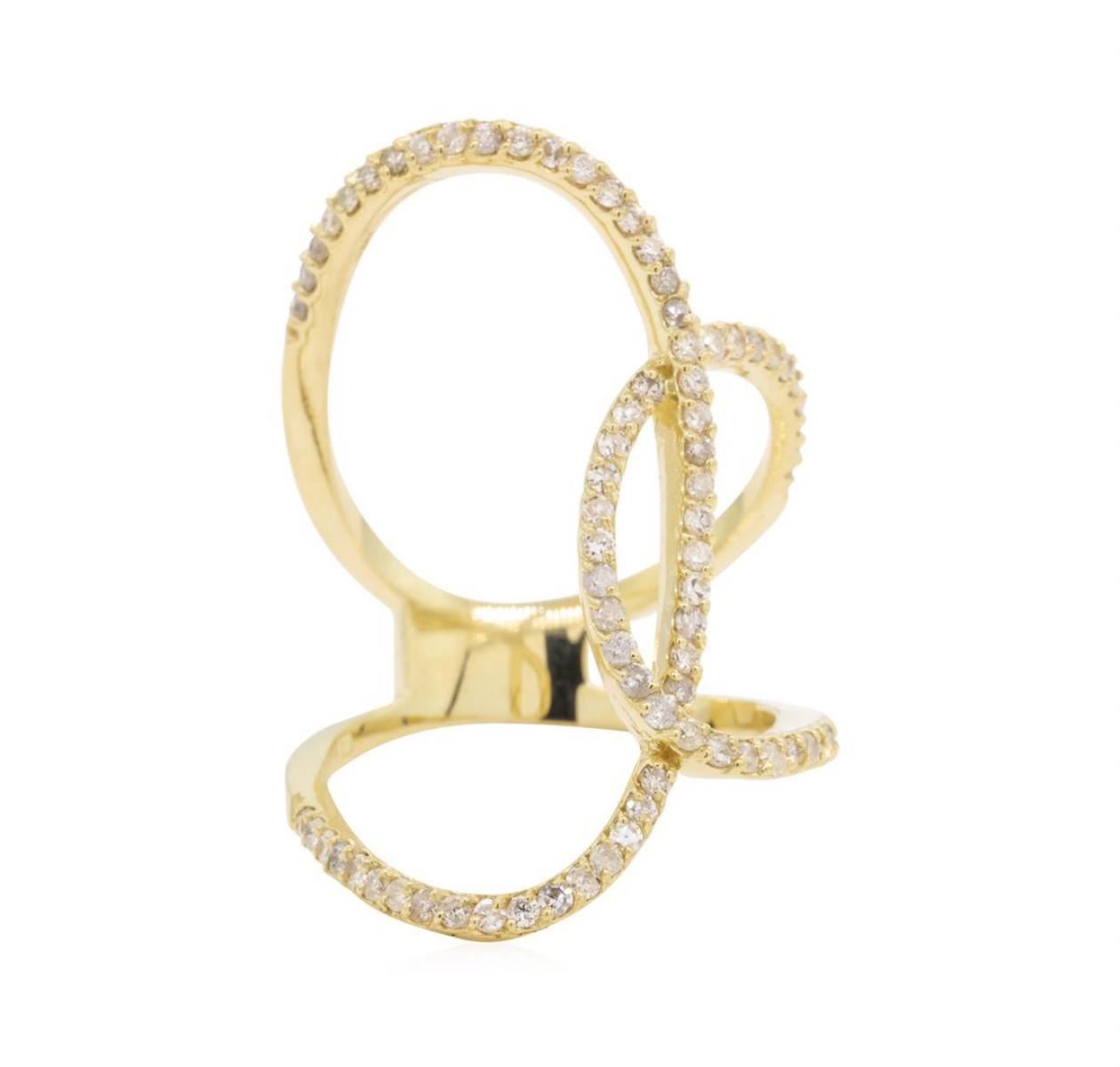 One electronically tested 14KT yellow gold lady's cast fashion ring with a free form spiral with a bright polish finish. This featured lady's ring has a shank measuring 5.10 millimeters in width. Identified with markings of '14K'. Condition is new, good workmanship. Containing: Seventy-Nine prong set single cut diamonds, measuring 1.40 - 1.30 x 0.84mm (depth est.) approximate total weight of 79 Stones = 0.75ct. Graded in the setting. Color H - J Clarity SI-2 to I-1 Cut Good. Total Weight of Diamonds 0.75ct.. Total Weight of Ring 5.20gm GAS Appraised at $2095.00. GAS Appraised.