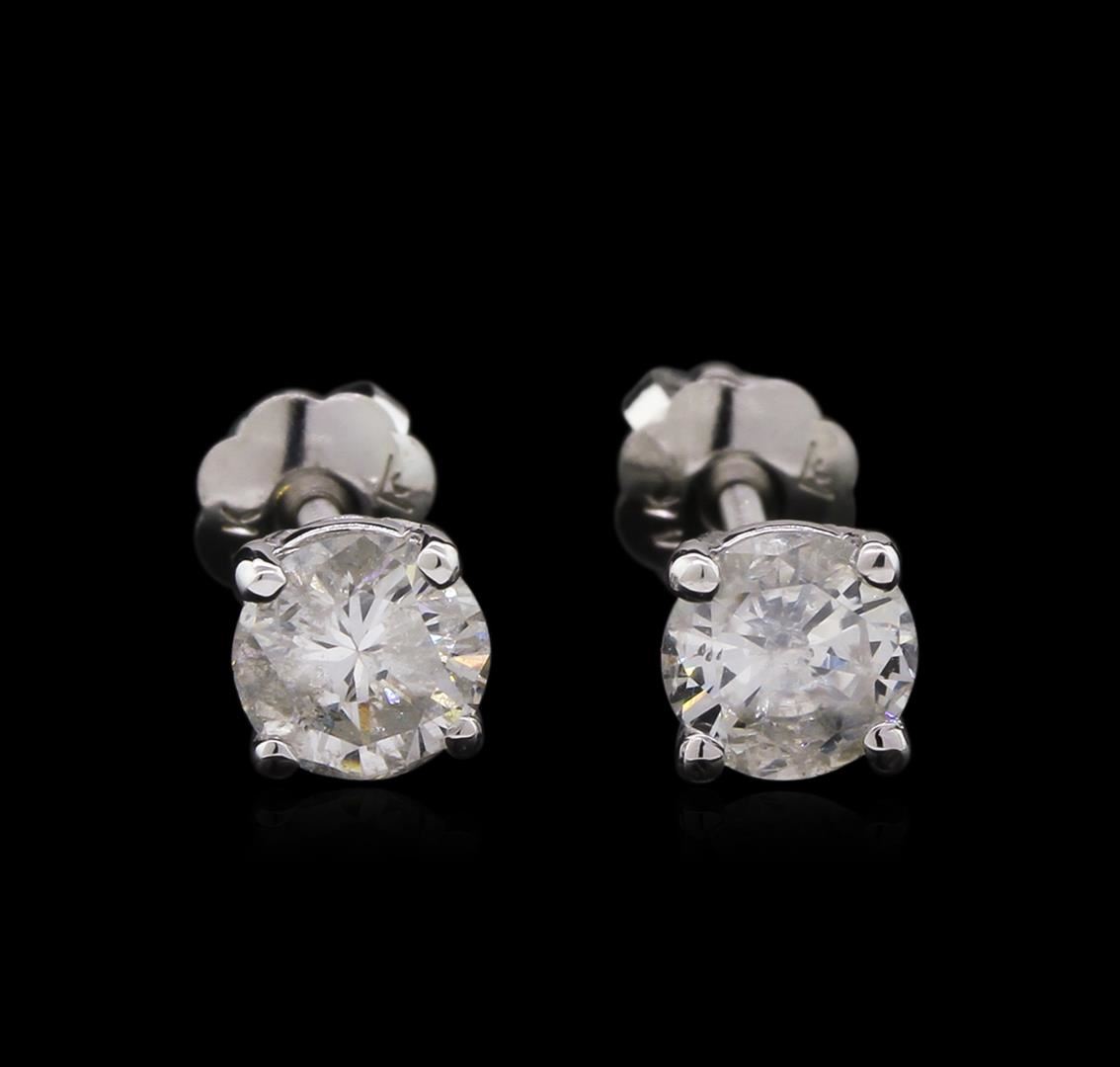One pair of earrings featuring: 14KT white gold weighing 0.59 grams containing two diamonds with a total weight of 0.75ct.