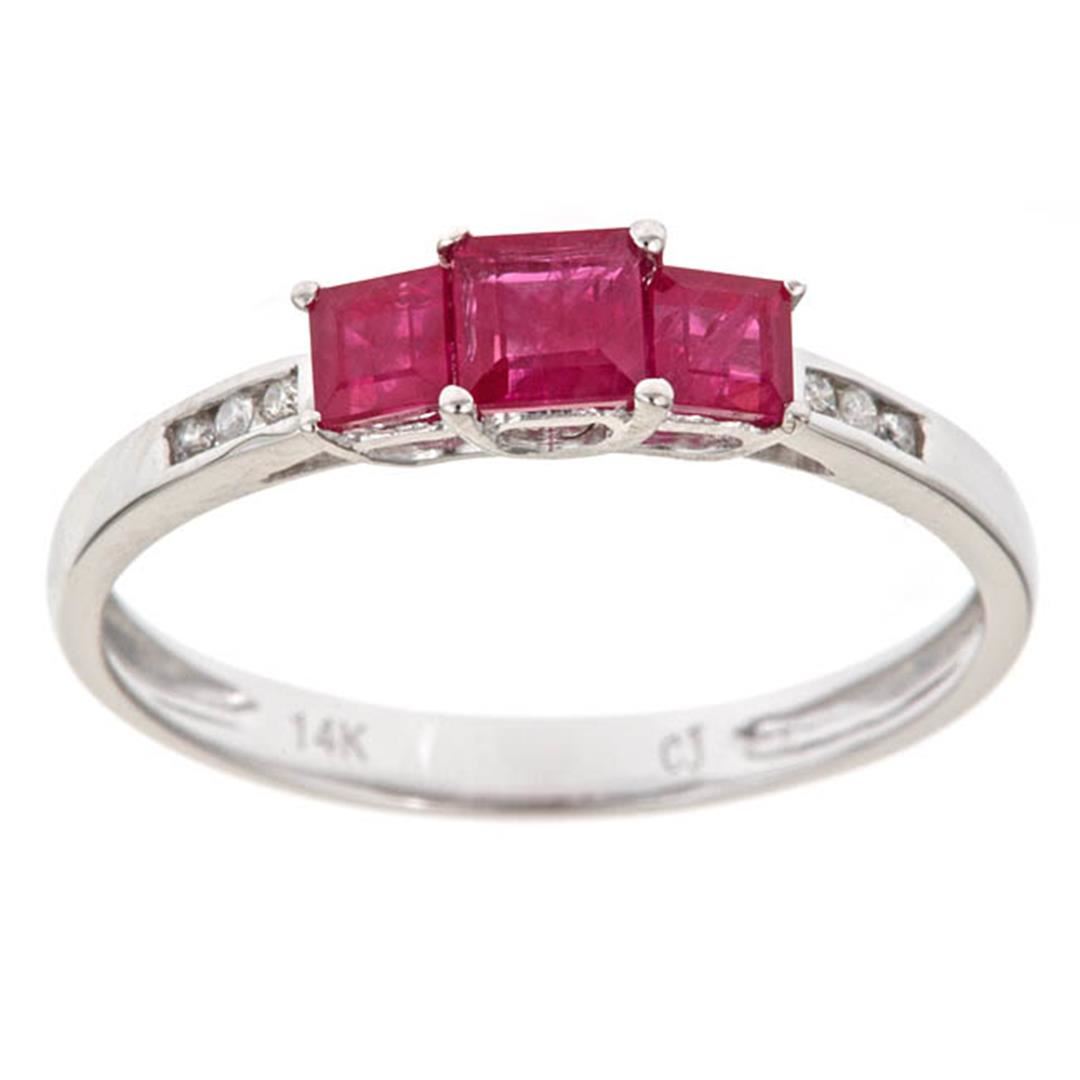 One Ring featuring: 14KT White Gold weighing 1.44 grams containing Ruby with an approximate weight of 0.75ct, Diamond with an approximate weight of 0.04ct, and with an approximate weight of ct.