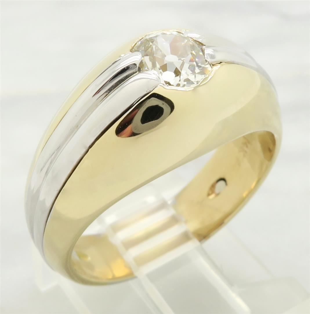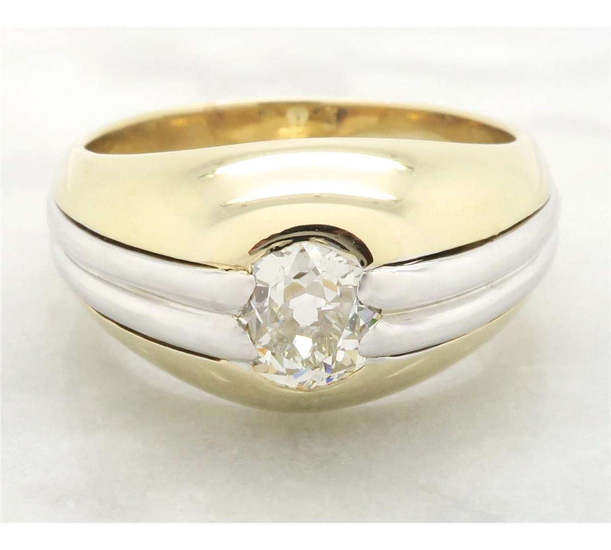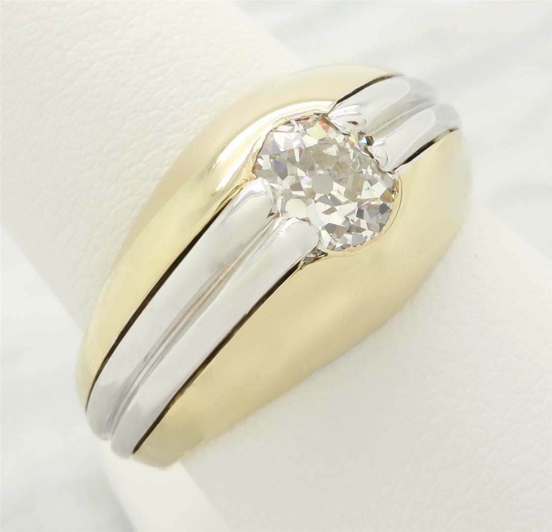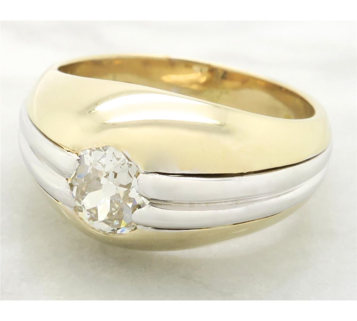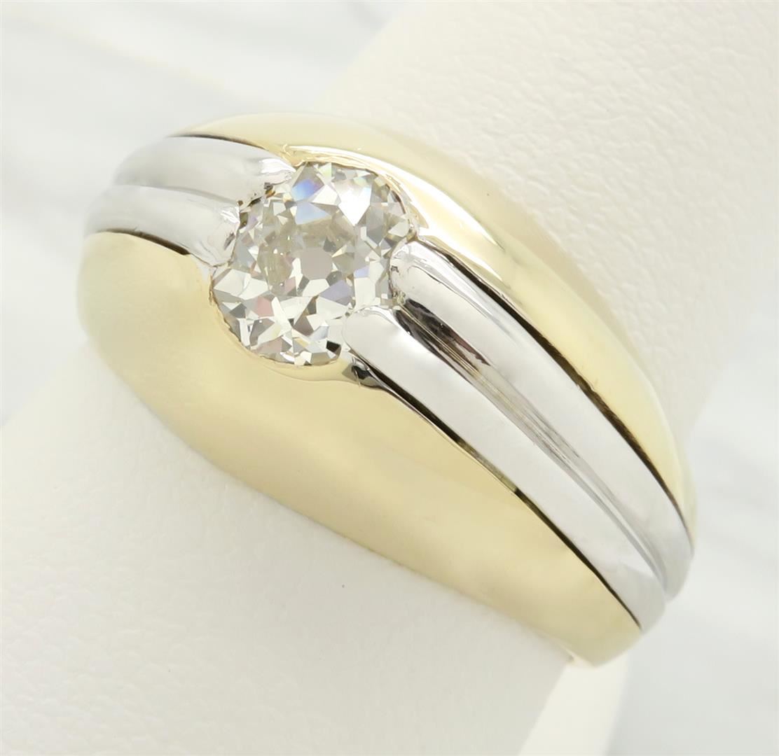 One tested 14K gold diamond ring. Containing: One Old Mine Cut Diamond. Approximate Size: .75CT, Clarity: SI1, Color: I-J. All diamonds are graded in the mounting unless otherwise stated. Weight of ring: 9.8 grams, Size: 8.25.