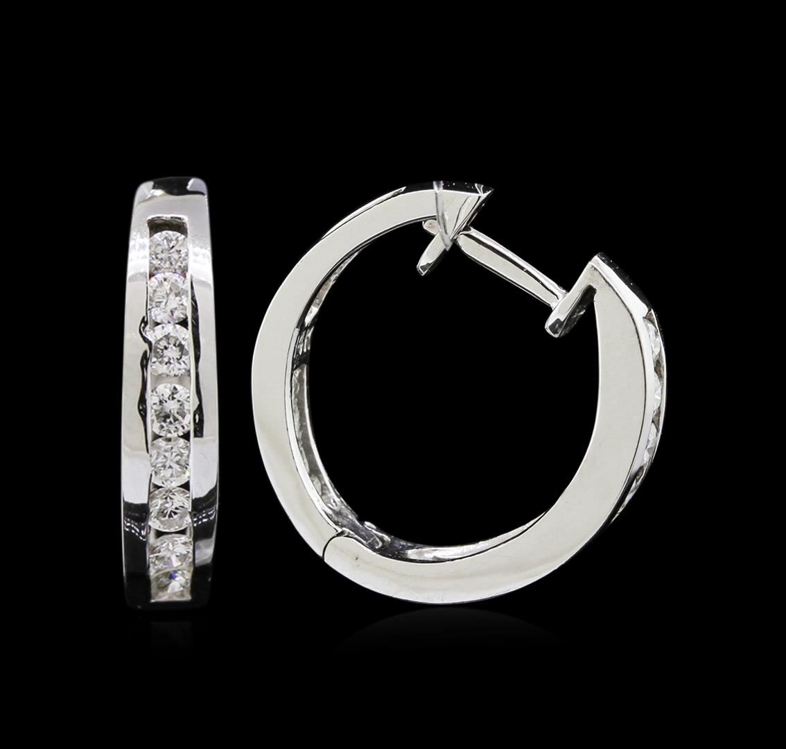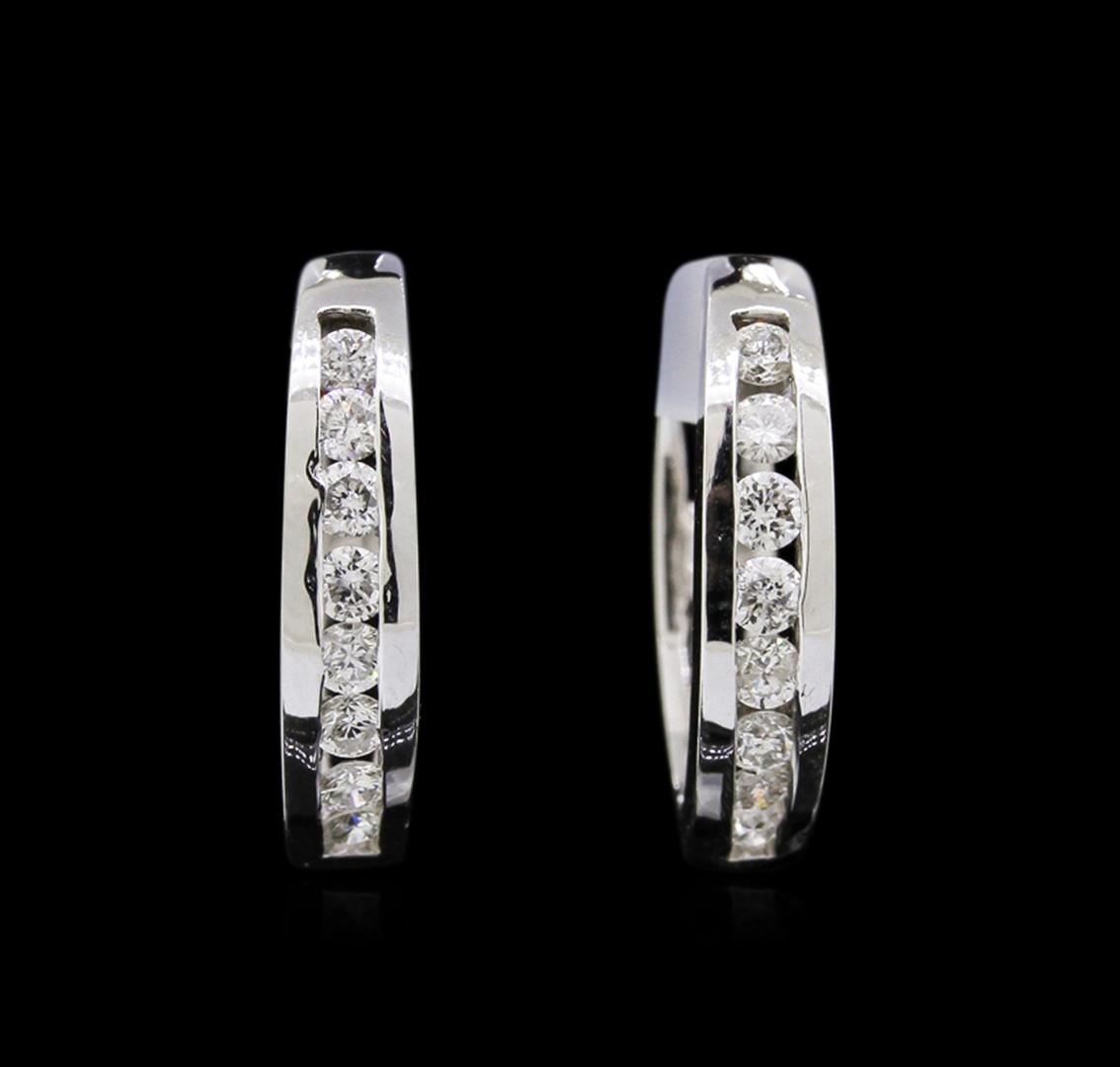 One pair of earrings featuring: 14KT white gold weighing 4.50 grams containing diamonds with a total weight of 0.75ct.