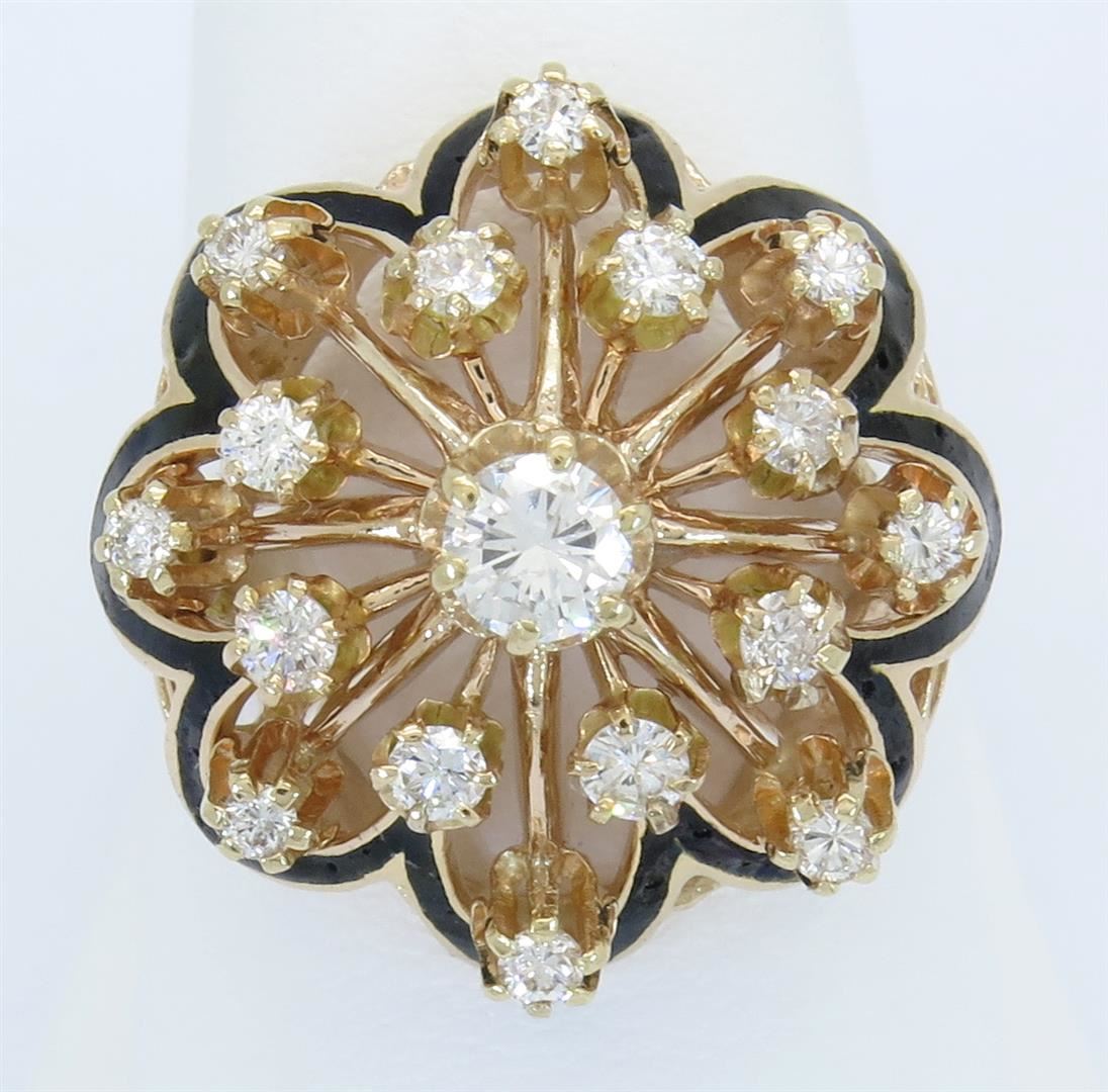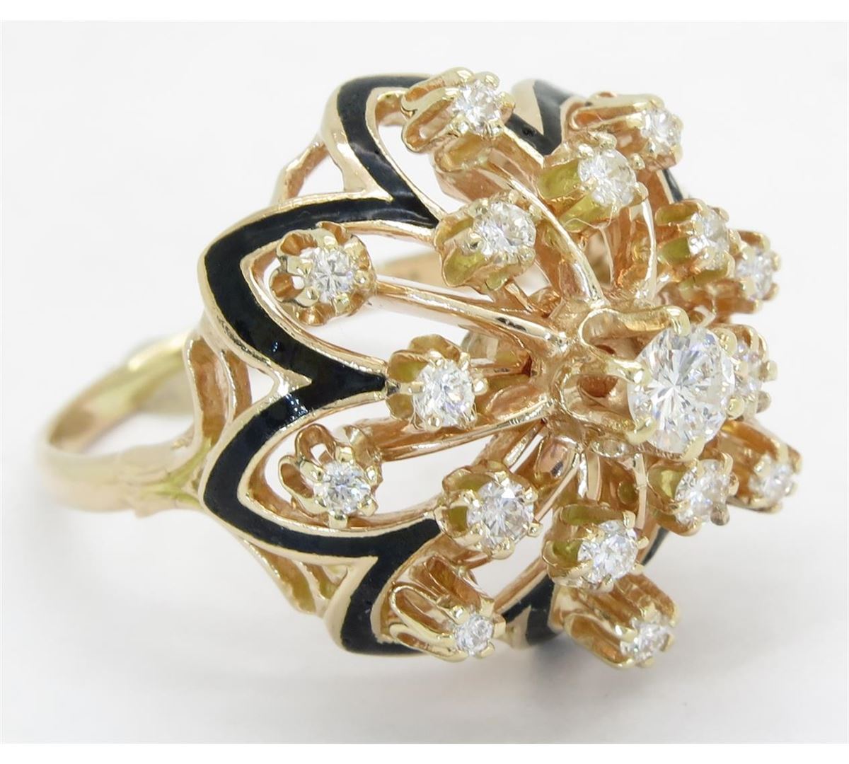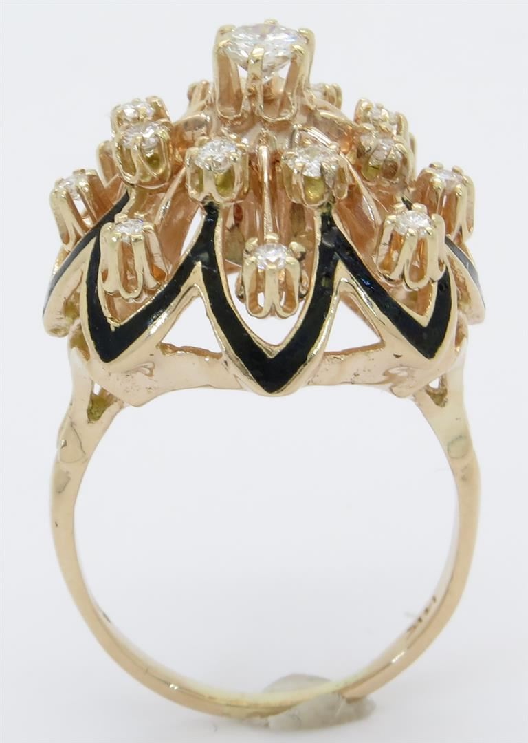 One tested 14K yellow gold diamond ring. Containing: 17 Round Brilliant Cut Diamonds. Approximate total diamond weight: 3/4CTW. Diamonds are graded in the mounting, unless otherwise stated. Weight: 9.4 grams. Size: 8.25