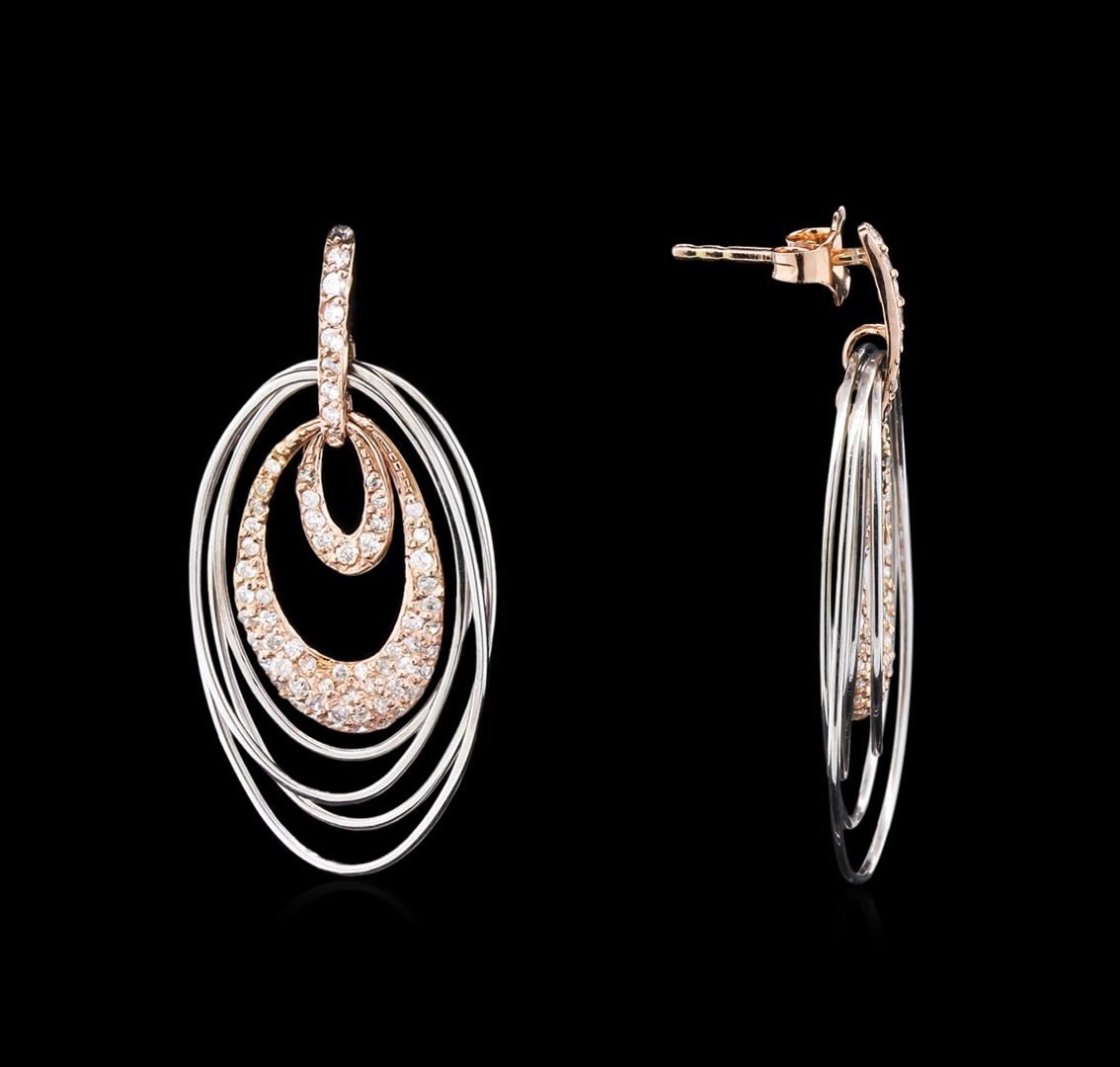 One pair of earrings featuring: 14KT two-tone gold weighing 6.43 grams containing diamonds with a total weight of 0.76ct.