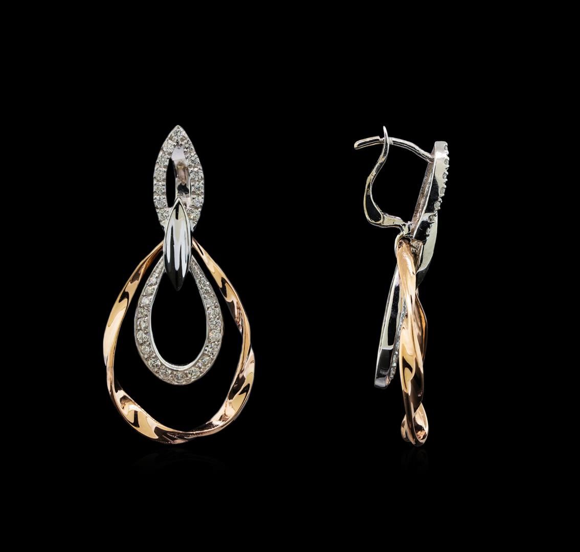 One Pair of earrings : 14KT rose and white gold weighing 7.27gm containing diamonds with a total weight of 0.76ct.