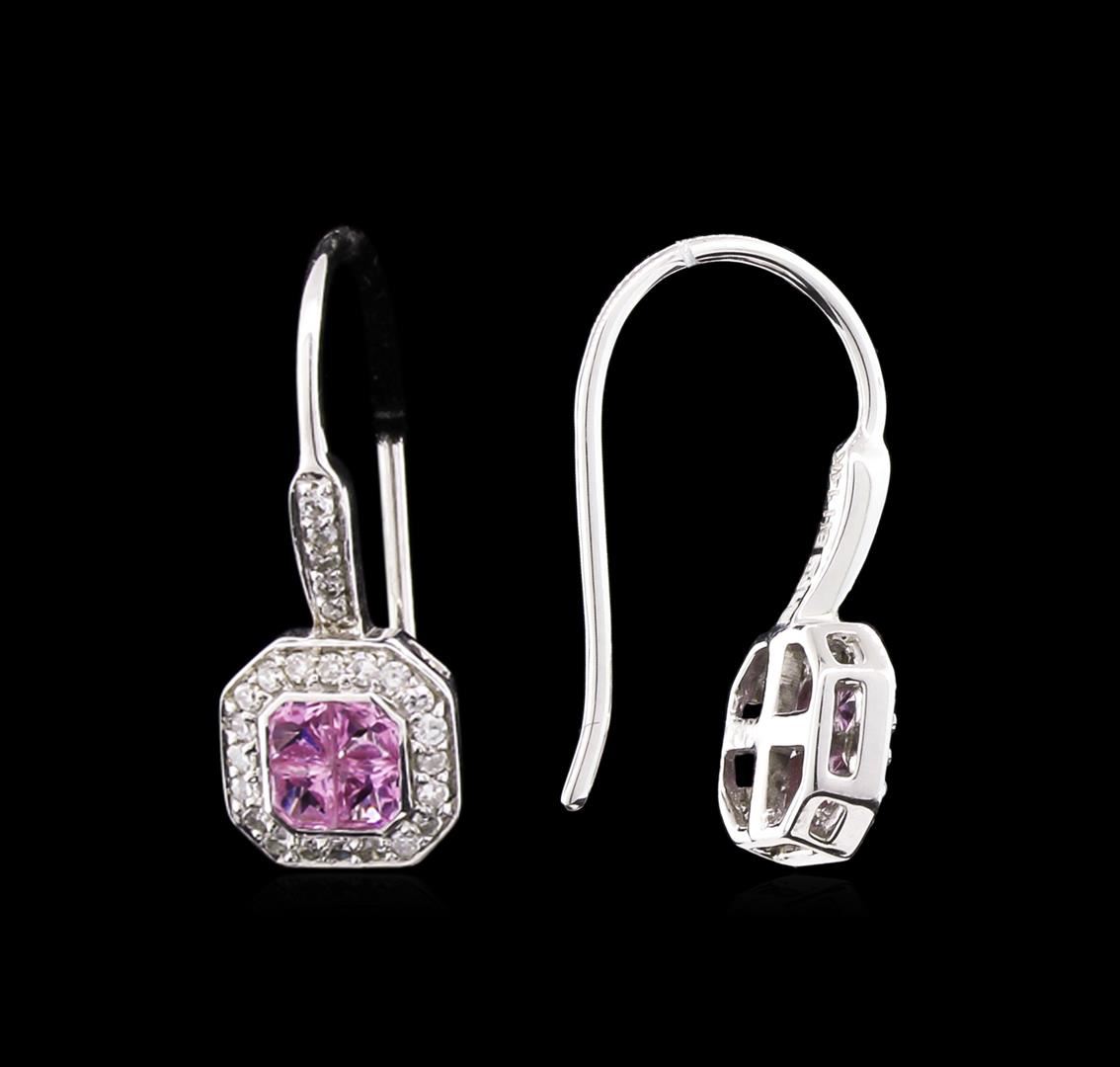 One pair of earrings featuring: 14KT white gold weighing 2.20 grams containing pink sapphires with a total weight of 0.76ct and diamonds with a total weight of 0.22ct.