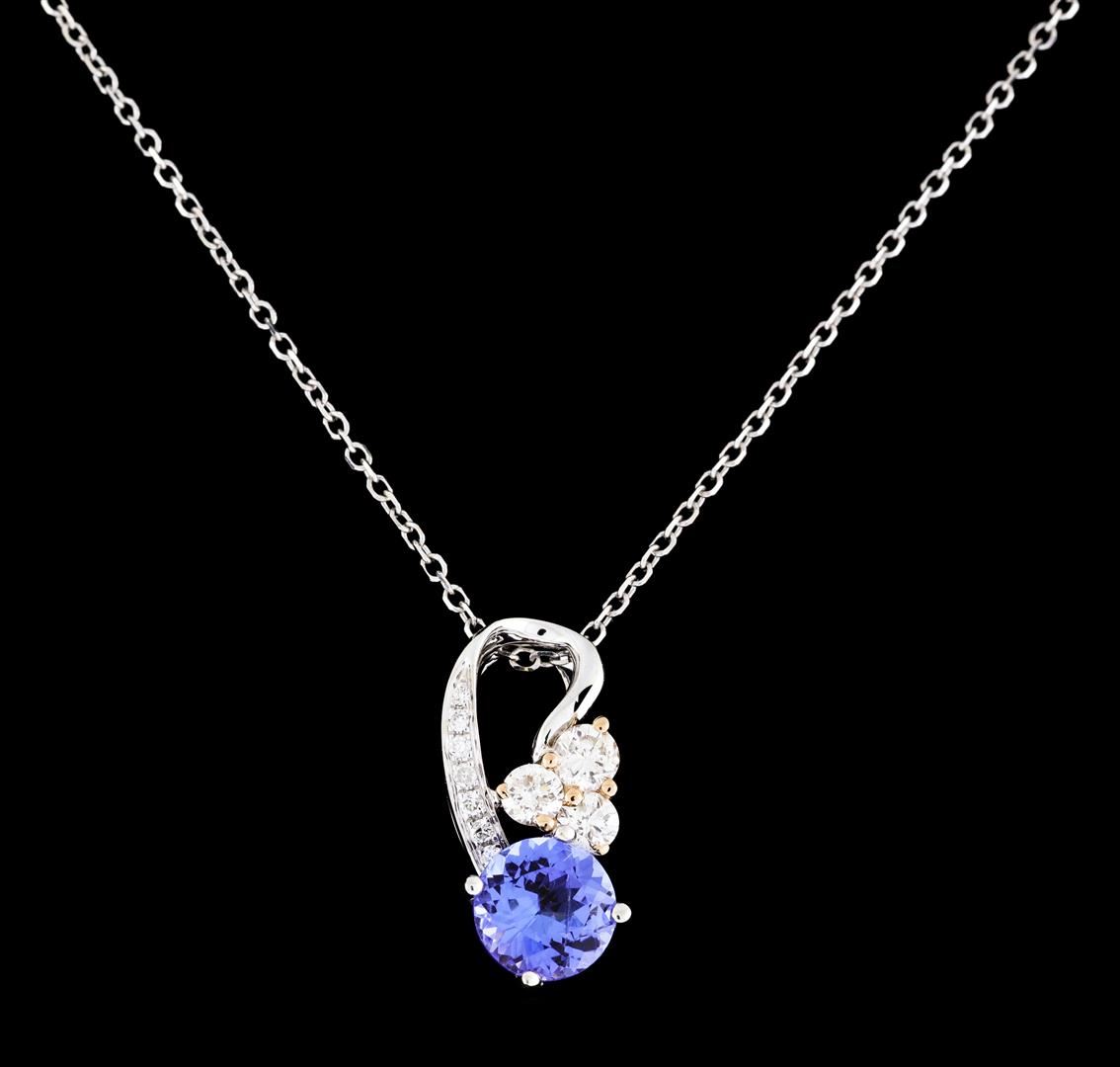 One Pendant with chain : 18KT white gold with a total weight of 1.10gm featuring Tanzanite weighing 0.76ct and diamonds weighing 0.24ctw.