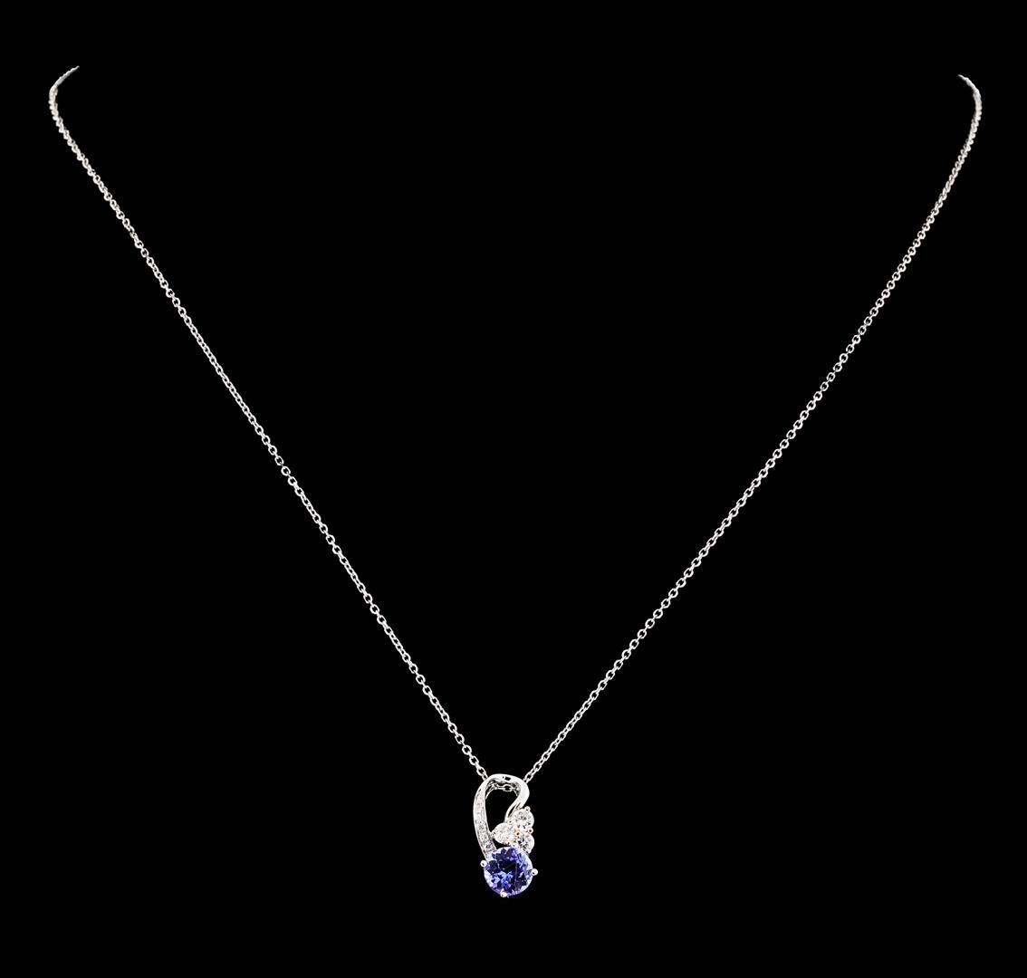 One Pendant with chain : 18KT white gold with a total weight of 1.10gm featuring Tanzanite weighing 0.76ct and diamonds weighing 0.24ctw.