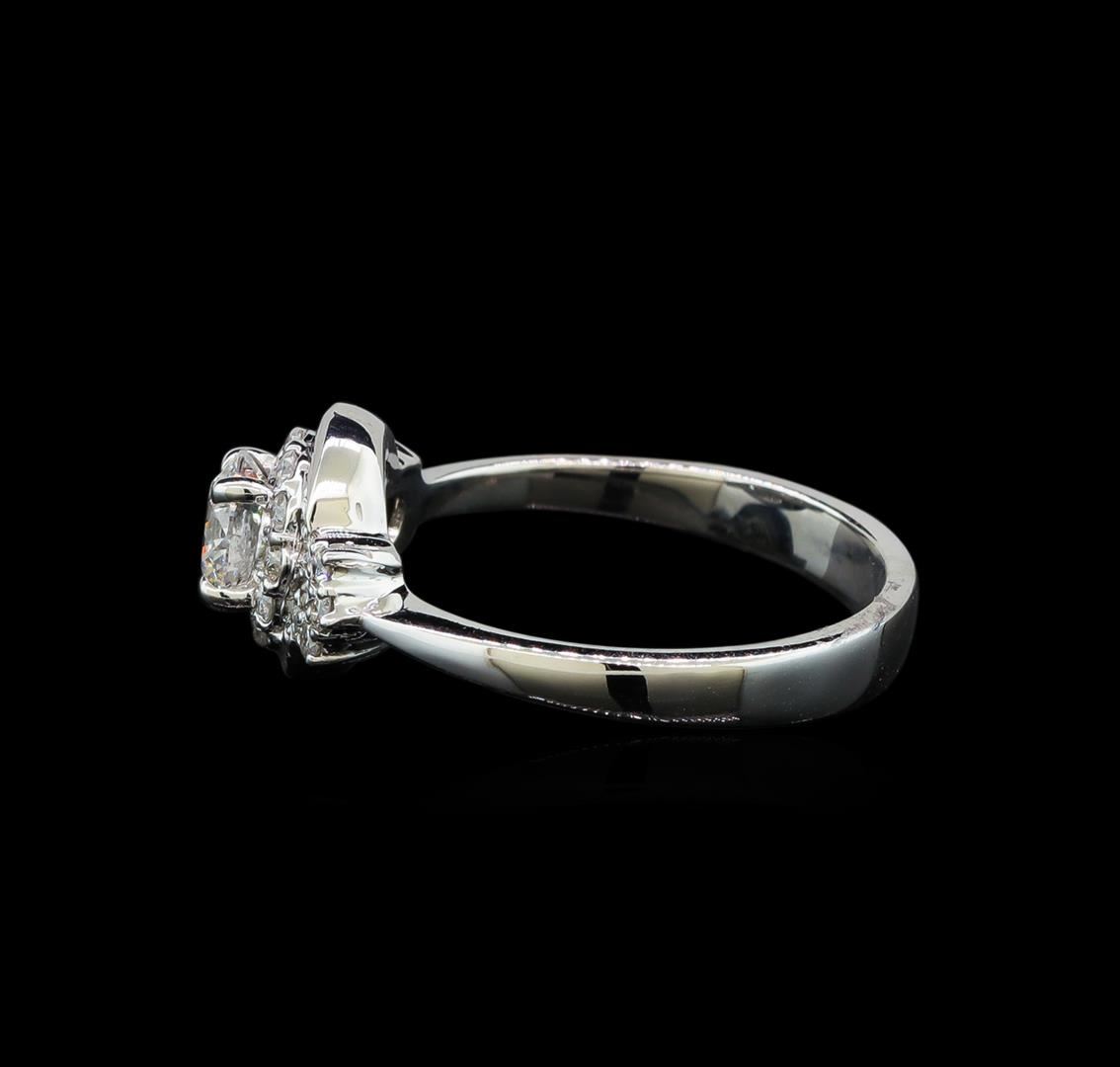 One electronically tested 14KT white gold lady's combination cast & assembled wedding ring with a bright polish finish. The featured lady's ring has a shank measuring 3.13 millimeters wide. Identified with markings of '14K'. Condition is new, good workmanship. Containing: One prong set round brilliant cut diamond, measuring 5.06 - 5.04 x 3.18mm (depth est.) approximate weight of 0.53ct. Graded in the setting. Clarity SI-3. Color: H Cut Good Twenty-Four prong set round brilliant cut diamonds, measuring 1.40 - 1.35 x 0.86mm (depth est.) approximate total weight of 24 Stones = 0.24ct. Graded in the setting. Clarity SI-1 to I-1. Color: G - I Cut Good. Total Weight of Diamonds 0.77ct.. Total Weight of Ring 3.30gm. GAS Appraised at $4,825.00.