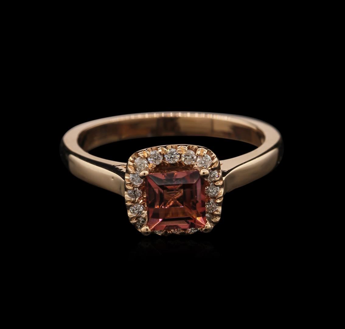 One ring featuring: 14KT rose gold weighing 3.63 grams containing one pink tourmaline center stone with a total weight of 0.78ct and 16 diamonds with a total weight of 0.15ct.