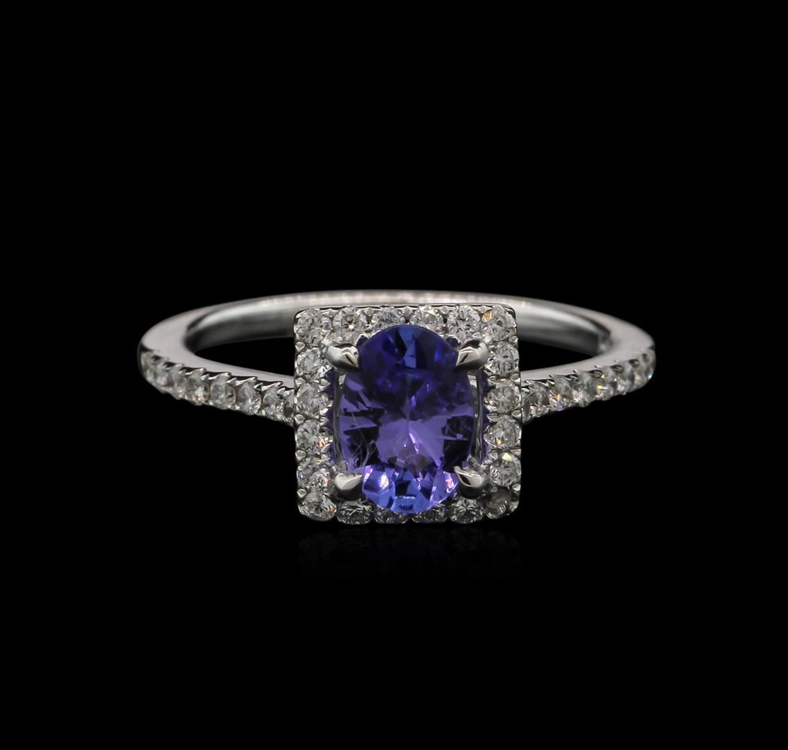 One ring featuring: 14KT white gold weighing 2.92 grams containing one prong set oval shape tanzanite center stone with a total weight of 0.78ct and prong set round diamonds with a total weight of 0.50ct.