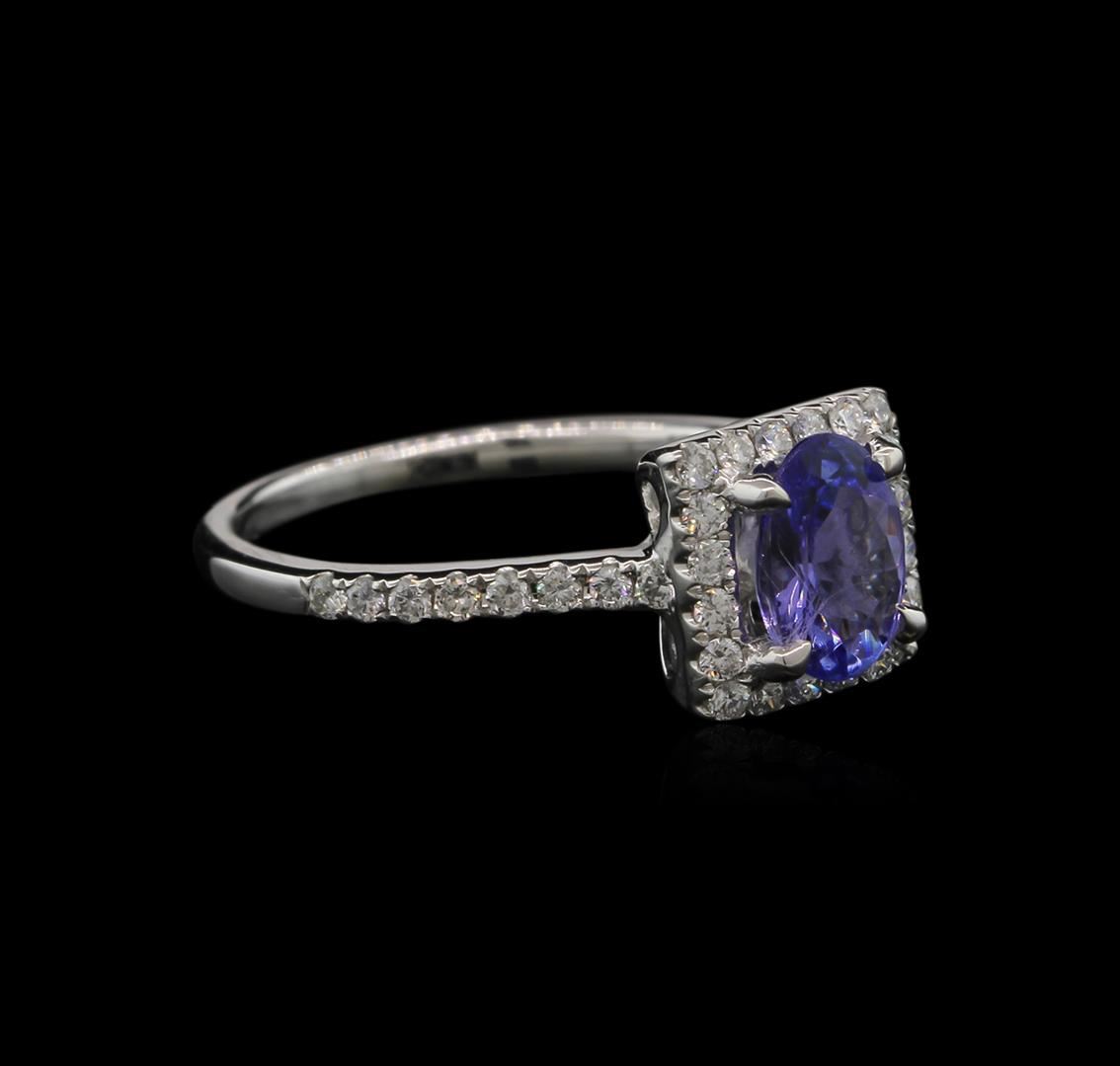 One ring featuring: 14KT white gold weighing 2.92 grams containing one prong set oval shape tanzanite center stone with a total weight of 0.78ct and prong set round diamonds with a total weight of 0.50ct.