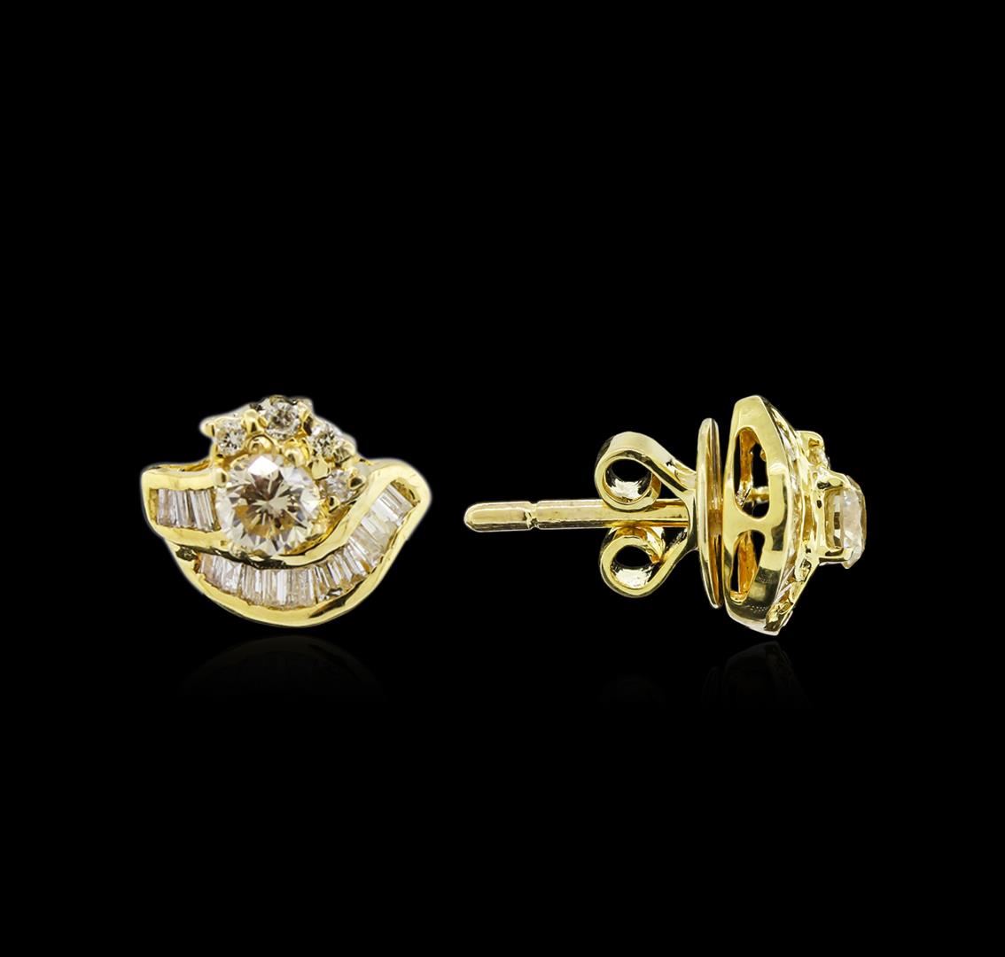 One pair of earrings featuring: 14KT yellow gold weighing 3.98 grams containing diamonds with a total weight of 0.78ct.