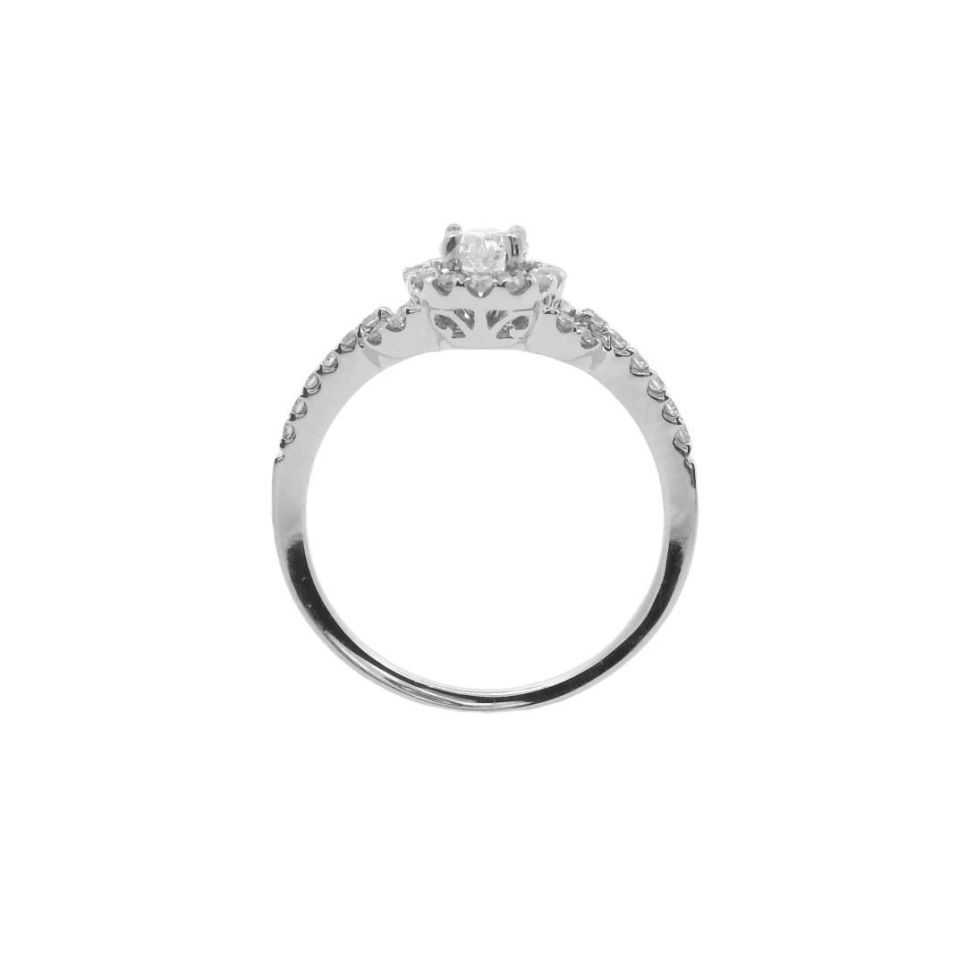 A perfect blend of elegance and charm, this 0.79 ctw diamond halo ring in 14KT white gold highlights a 0.46ct oval diamond in the center with I-1 clarity. Framed by 36 round brilliant diamonds totaling 0.33ct, the ring exudes a sophisticated allure, with each diamond meticulously set to enhance its brilliance. This piece is a refined choice for those who appreciate understated luxury.