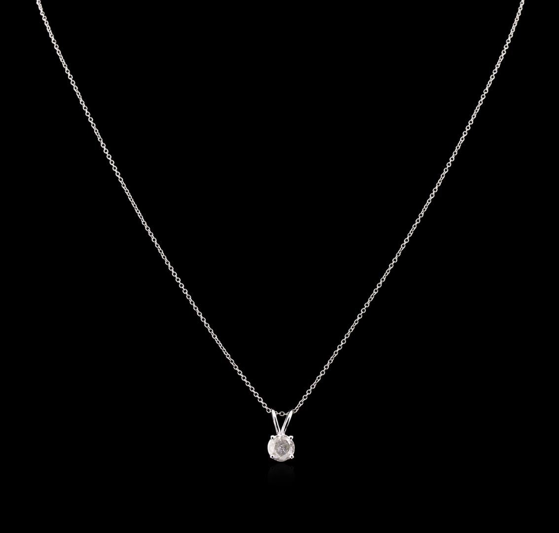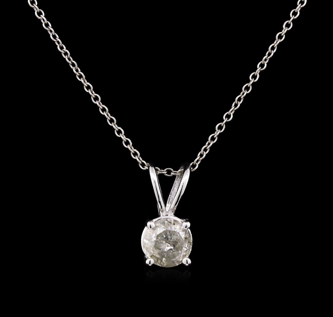 One solitaire pendant with chain featuring: 14KT white gold weighing 1.67 grams containing one diamond with a total weight of 0.79ct.