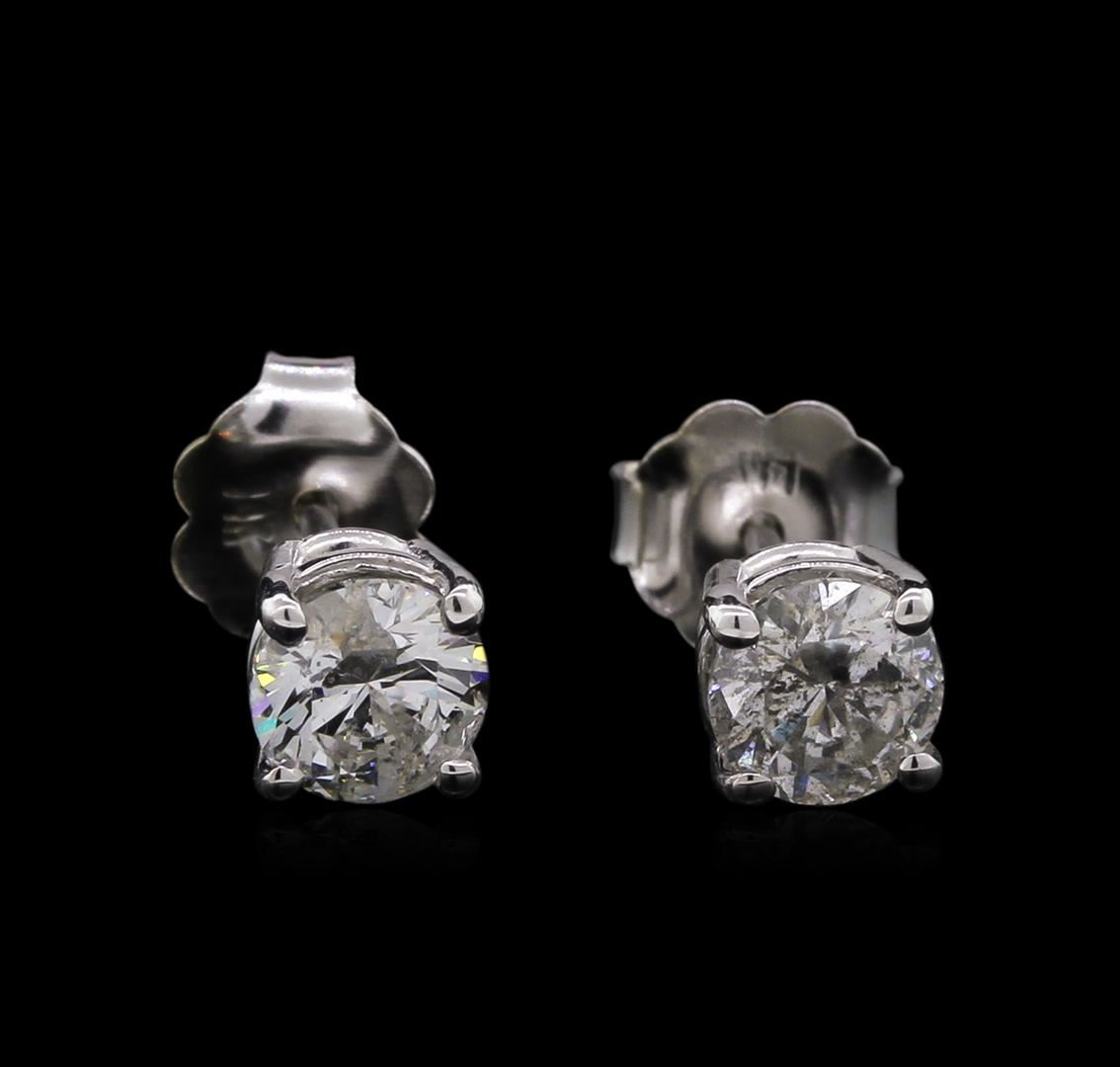 One pair of earrings featuring: 14KT white gold weighing 0.79 grams containing two diamonds with a total weight of 0.79ct.