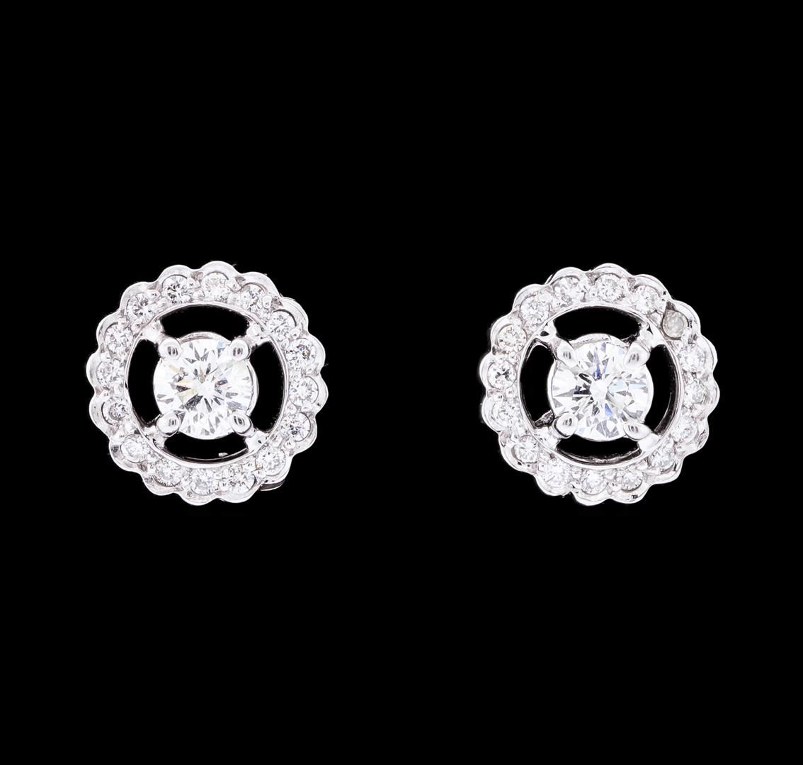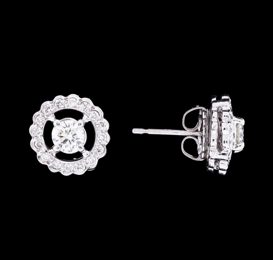 One pair of earrings featuring: 14KT white gold weighing 2.77 grams containing two center diamonds weighing 0.50ctw and side diamonds weighing 0.30ctw.