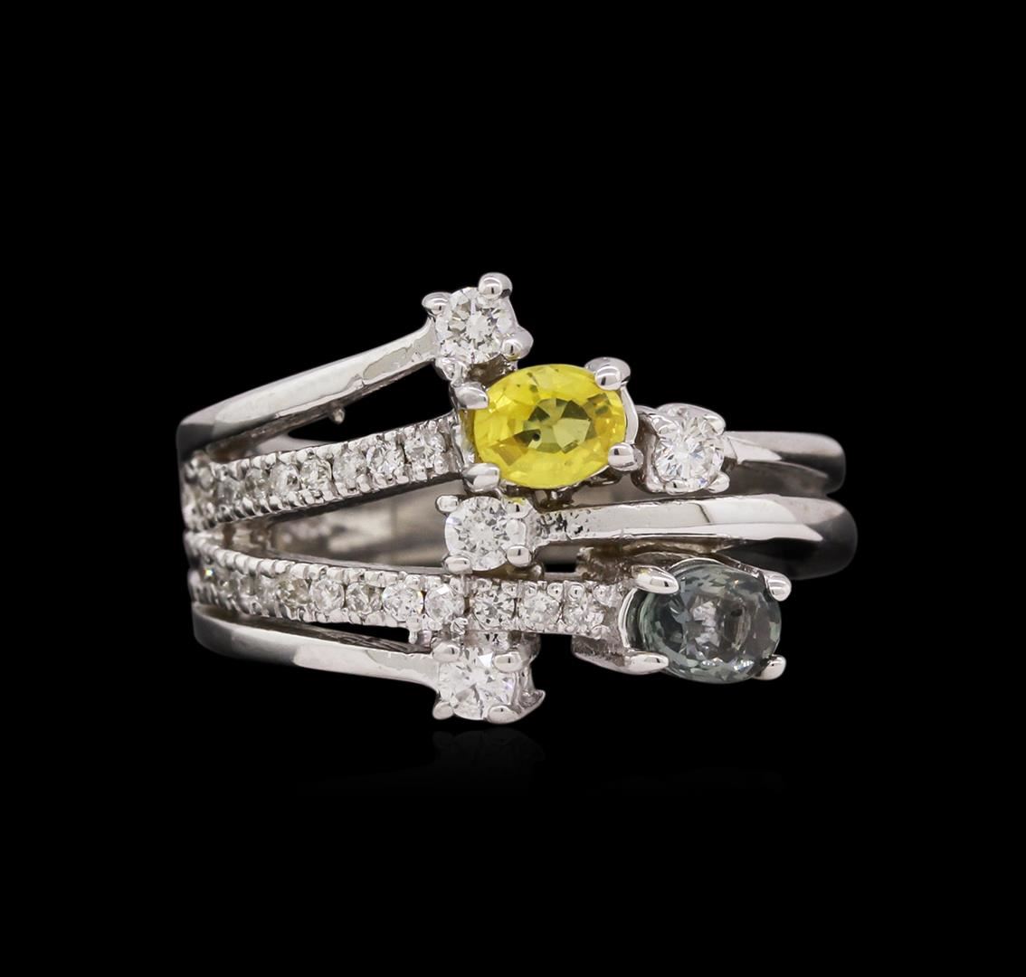 One ring featuring: 14KT white gold weighing 7.00 grams containing one green and one yellow sapphire with a total weight of 0.80ct and diamonds with a total weight of 0.38ct.