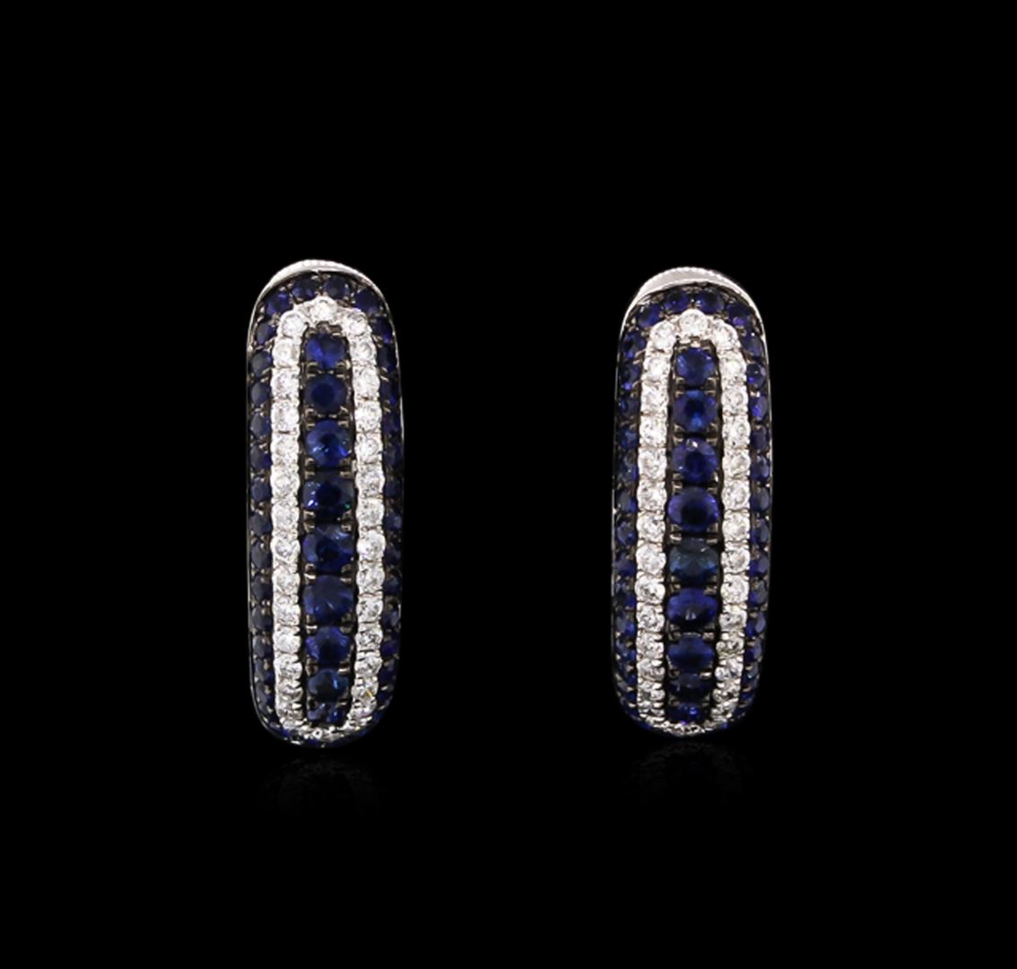 One pair of earrings with lever backs featuring: 14KT white gold weighing 2.40 grams containing sapphires with a total weight of 0.80ct and 64 brilliant cut diamonds with a total weight of 0.32ct.