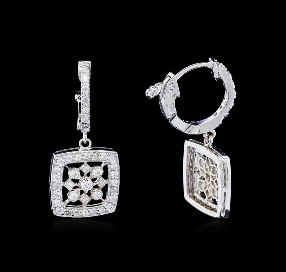 One pair of earrings featuring: 14KT white gold weighing 5.06 grams containing diamonds with a total weight of 0.81ct.