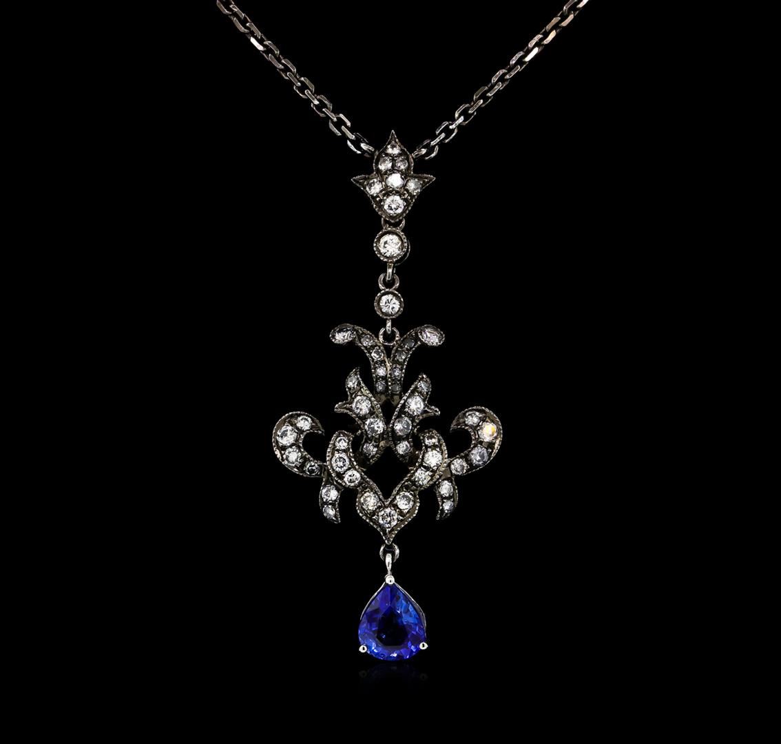 One necklace featuring: 18KT white gold weighing 5.30 grams containing one blue sapphire with a total weight of 0.82ct and diamonds with a total weight of 0.47ct.