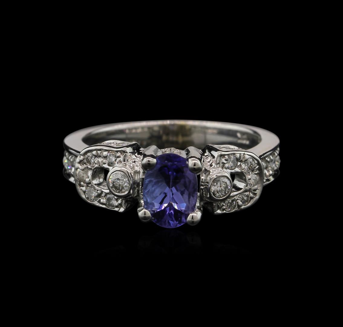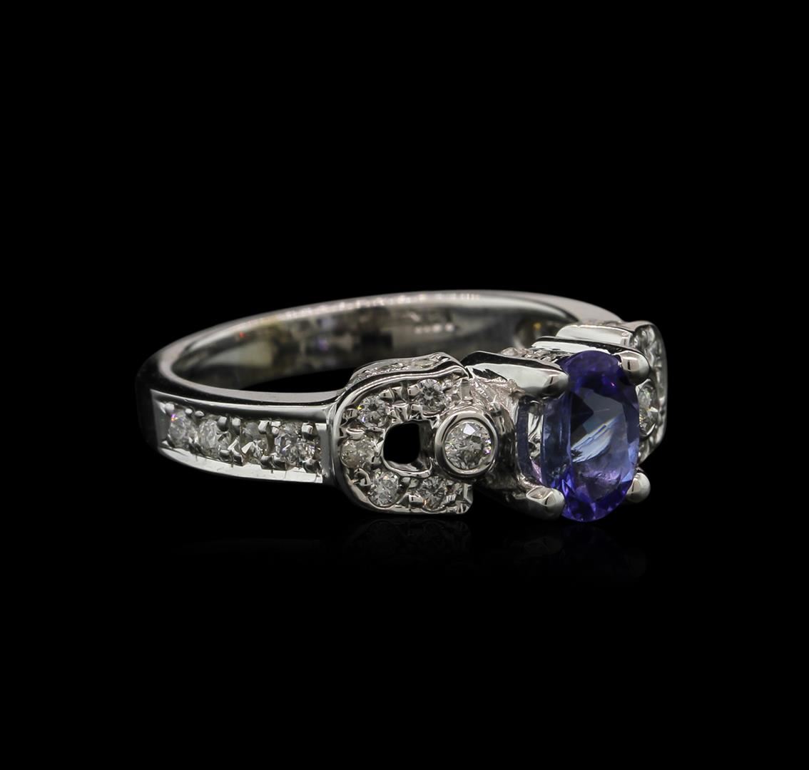 One ring featuring: 14KT white gold weighing 5.33 grams containing one prong set oval shape tanzanite center stone with a total weight of 0.82ct and pave and bezel set round diamonds with a total weight of 0.30ct.