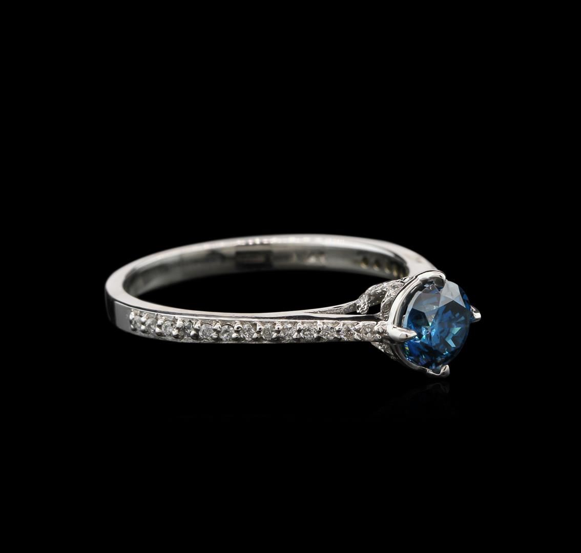 One ring featuring: 14KT white gold weighing 2.15 grams containing one blue diamond center stone with a total weight of 0.65ct and 38 diamonds with a total weight of 0.18ct.